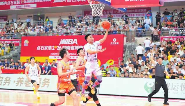 易边再战,岳阳队率先进球追平比分,双方陷入白热化拉锯战,比分多次交替上升。主场球迷齐声呐喊、声势震天,成为球队“第六人”。第三节最后一秒,张驰命中压哨三分,帮助岳阳队以50∶47反超比分。