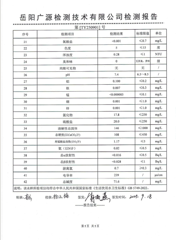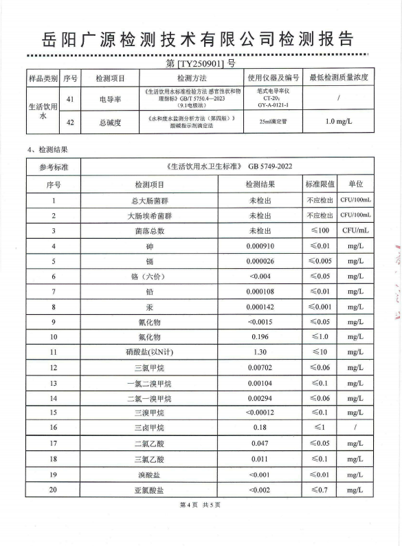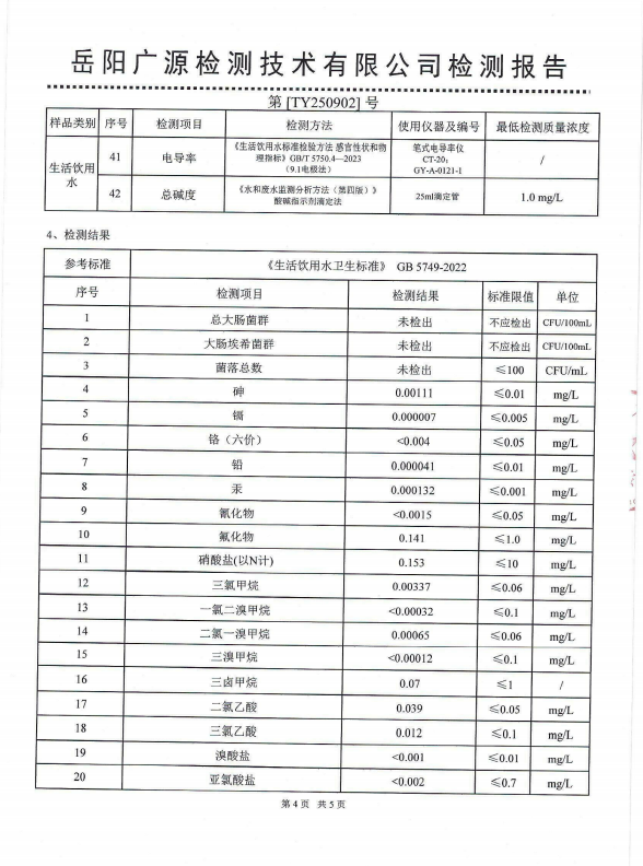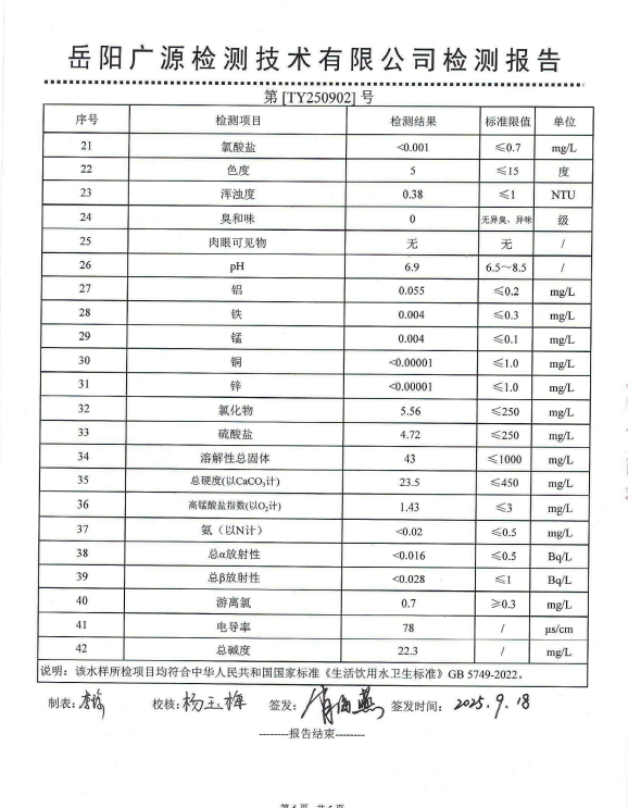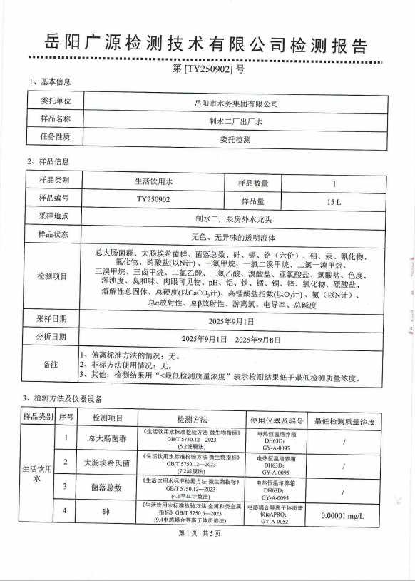 2025年9月岳阳市水务集团出厂水水质检测月报表
