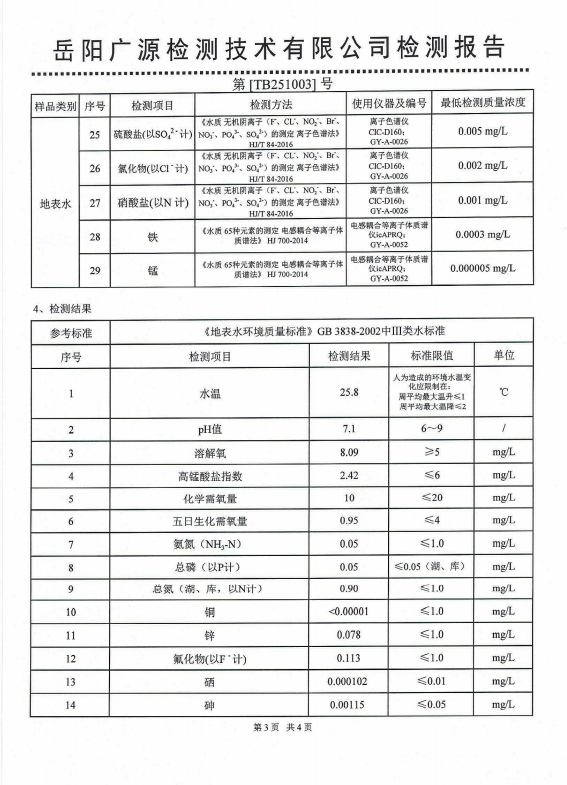 2025年10月岳阳市水务集团水源水水质检测月报表