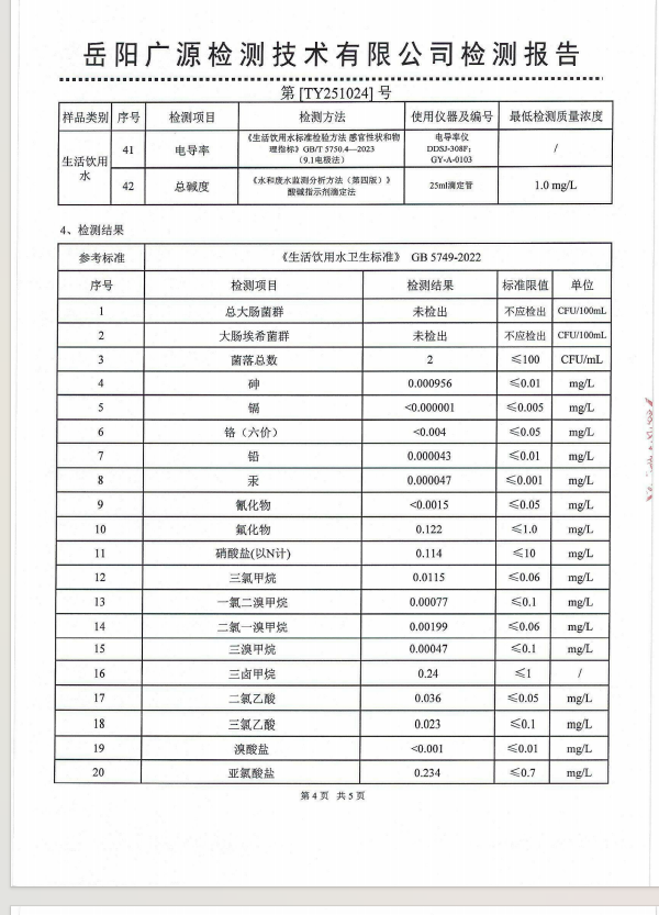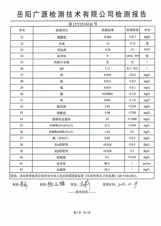 2025年10月岳阳市水务集团管网水水质检测月报表