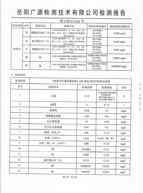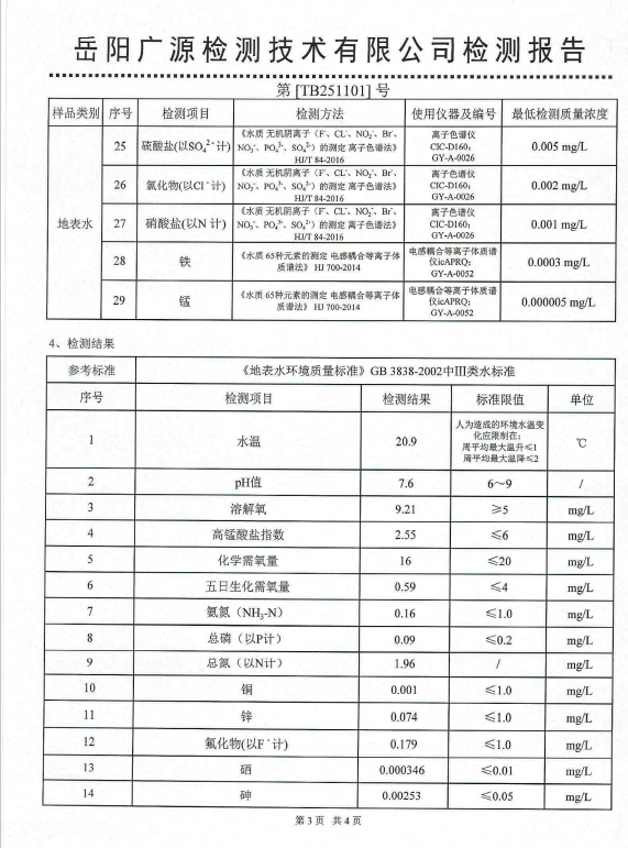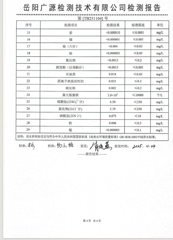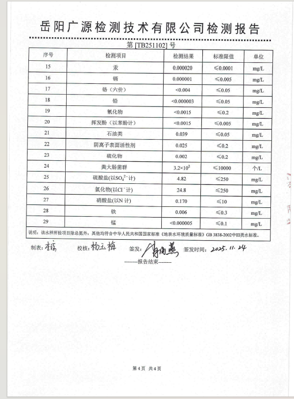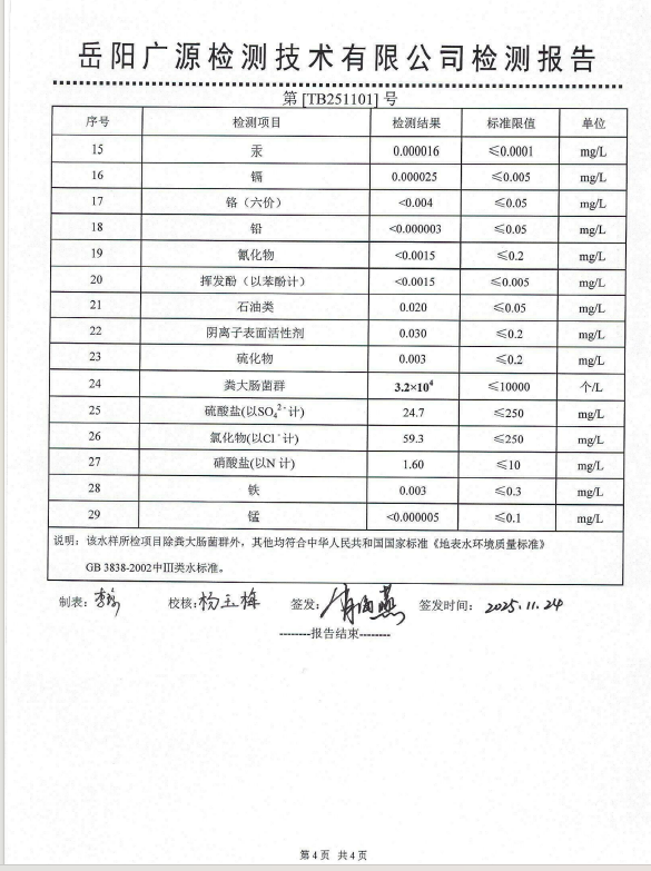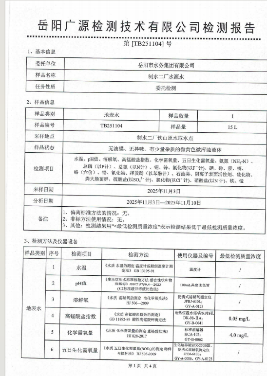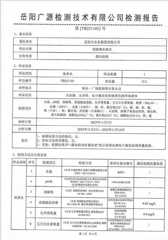 2025年11月岳阳市水务集团水源水水质检测月报表