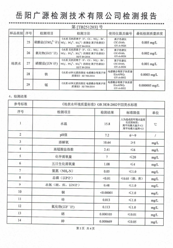2025年12月岳阳市水务集团水源水水质检测月报表
