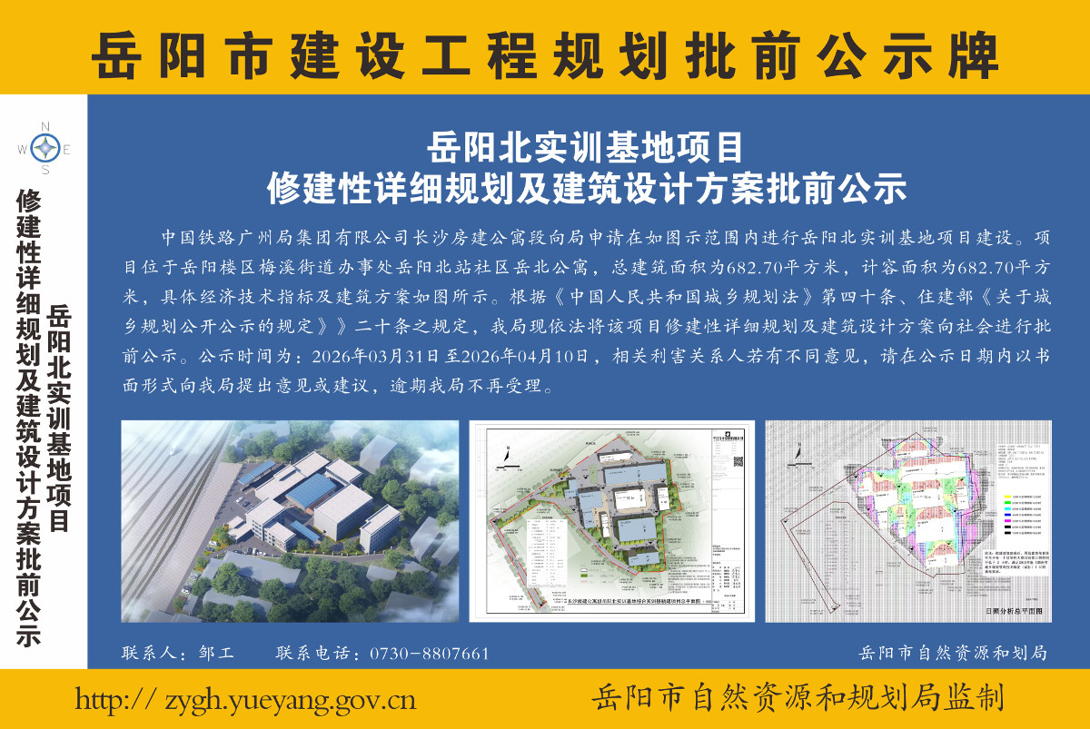 岳阳北实训基地项目修建性详细规划及建筑设计方案批前公示