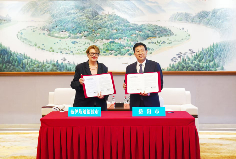 李挚代表市委、市政府对玛加丽达·萨洛芒一行的到访表示欢迎,并介绍了岳阳经济社会发展情况。他说,岳阳是国家区域性中心城市和省域副中心城市,历史悠久、区位优越、产业强劲、生态优美、宜居宜游,当前正在加快构建“1+3+X”现代化产业体系。岳阳市和茹伊斯迪福拉市都是区域工业城市、交通物流枢纽和历史文化名城,产业发展方向高度契合,合作前景广阔。希望双方建立常态化沟通机制,加强民间互动交流,进一步深化经贸、教育、文旅等多领域务实合作,实现优势互补、共赢发展。