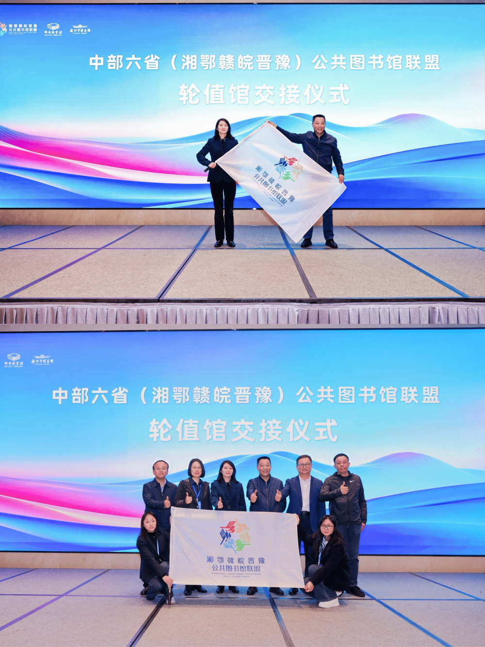 案例分享后,会议举行了中部六省公共图书馆联盟轮值馆交接仪式。贺美华馆长将轮值旗帜正式移交至江西省图书馆副馆长刘薇薇手中,标志着2026年联盟事业将在江西省图书馆的牵头下开启新篇章。