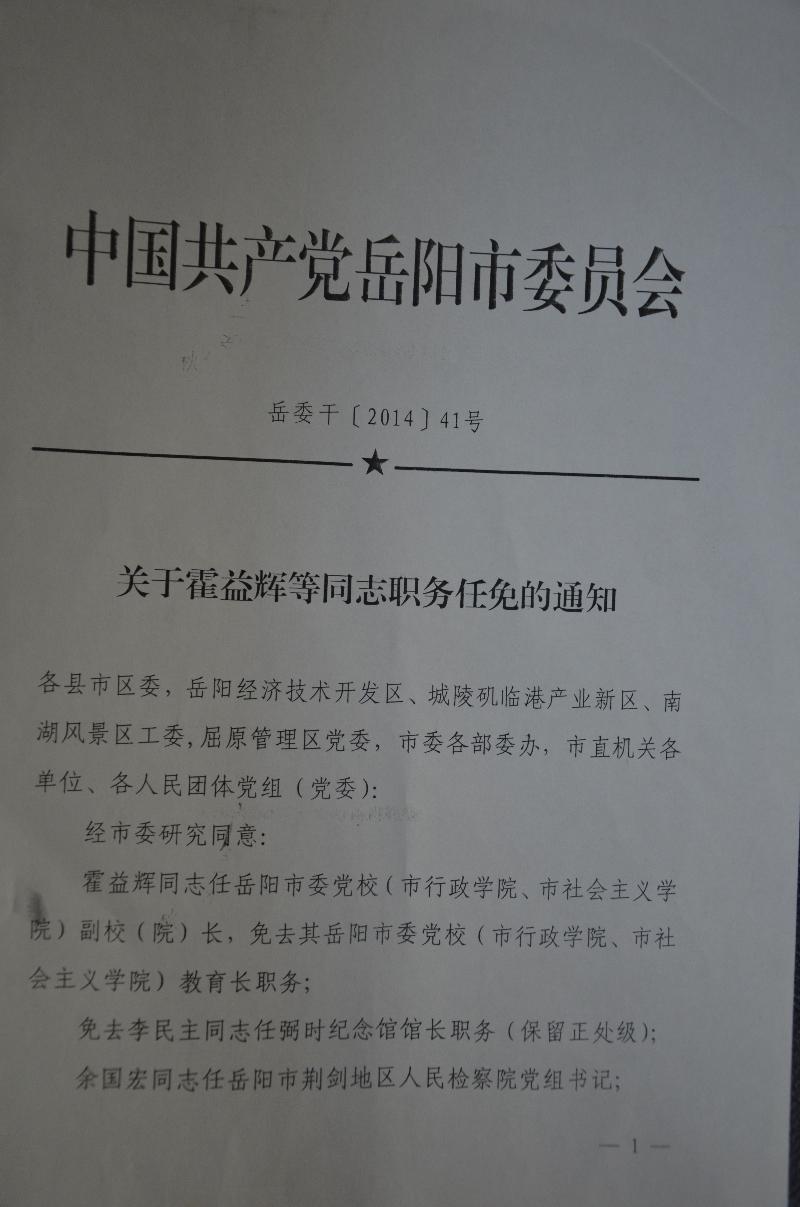 关于霍益辉等同志职务任免的通知