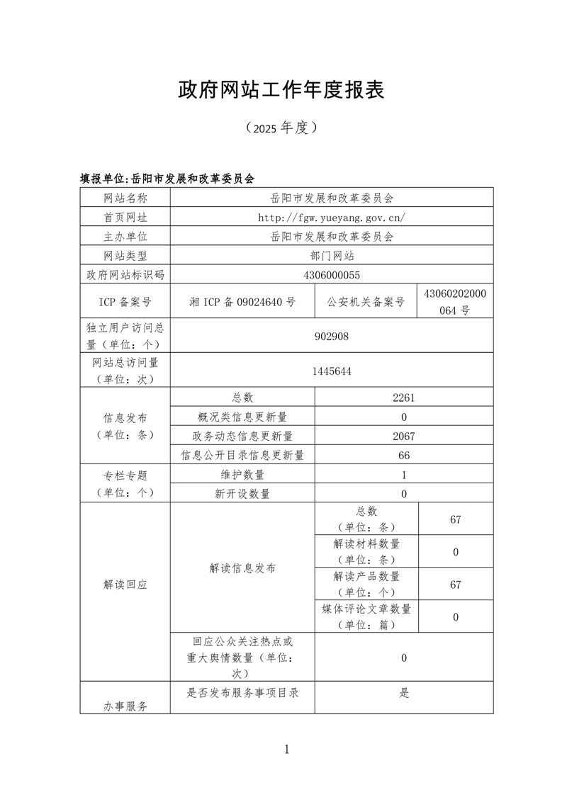 岳阳市发展和改革委员会2025年网站工作年度报表