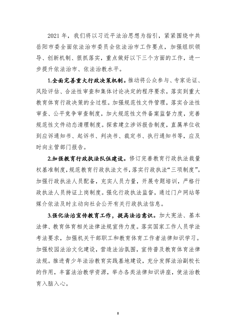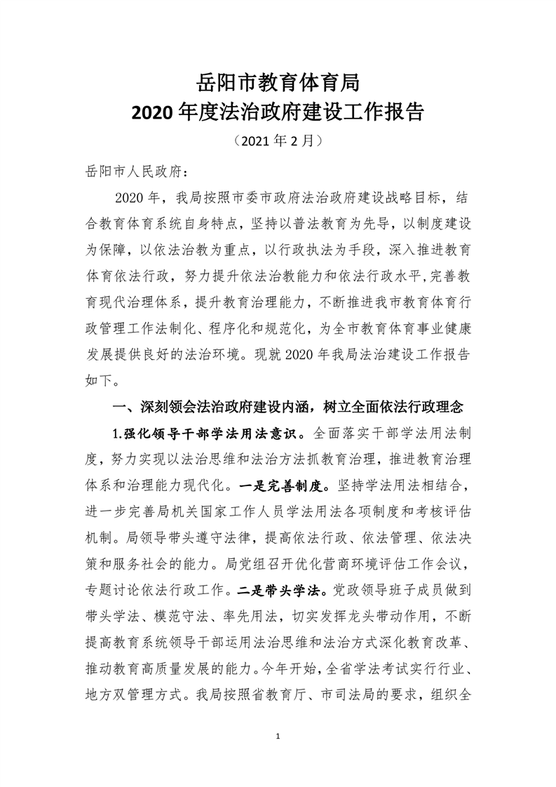 岳阳市教育体育局2020年度法治政府建设工作报告