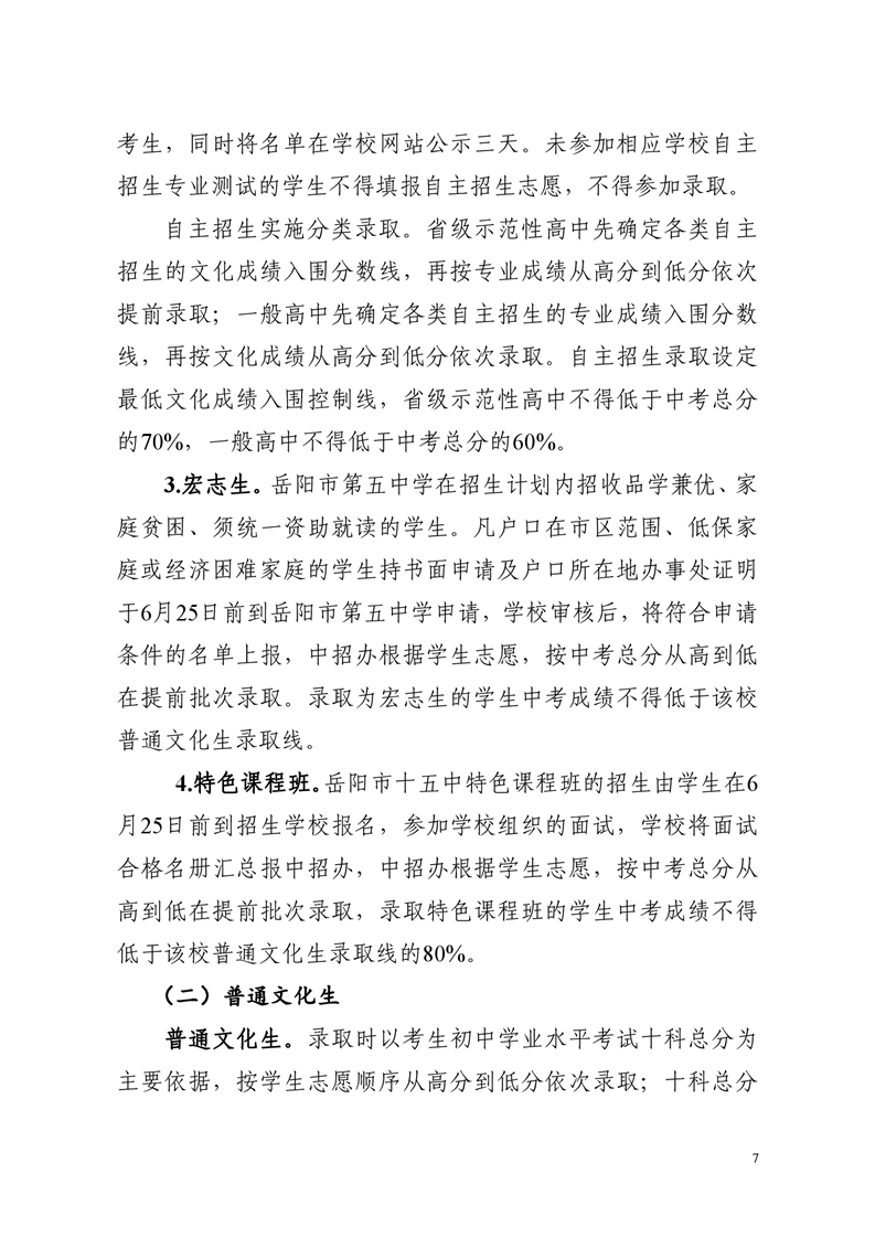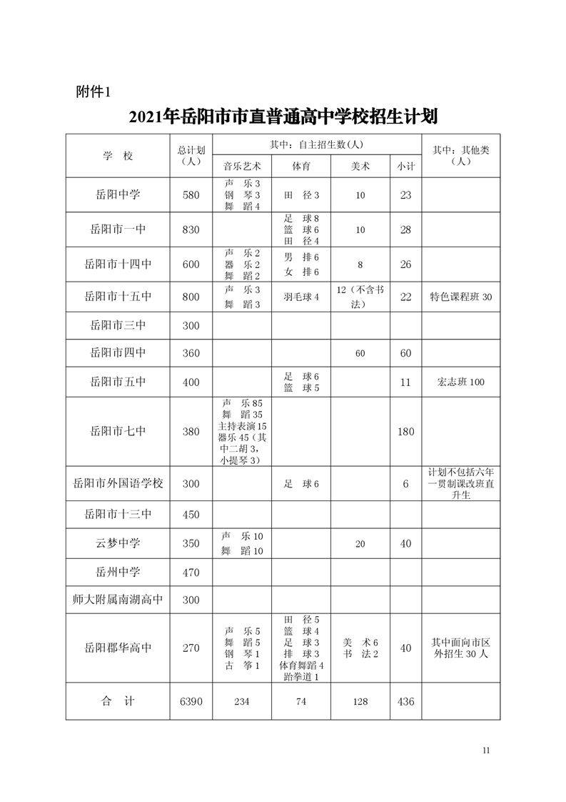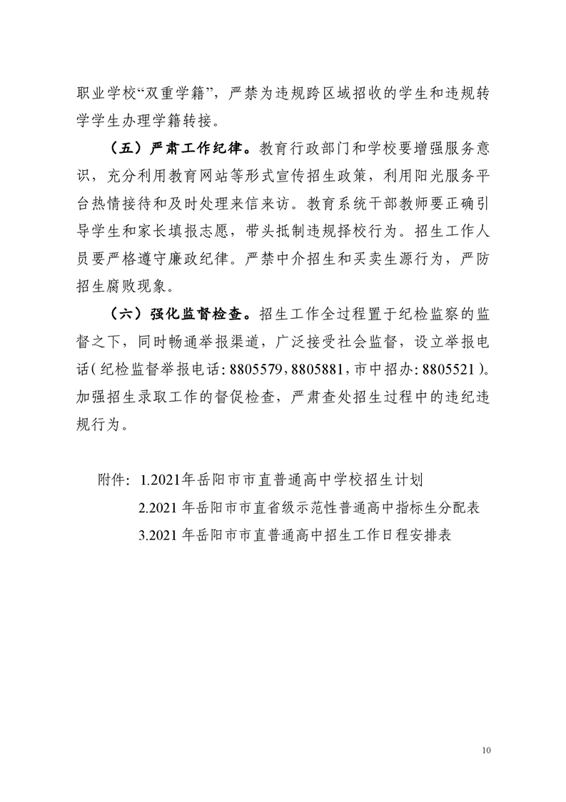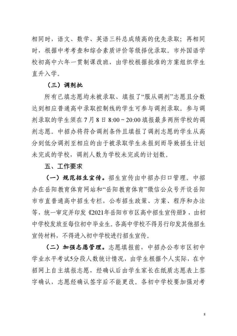 岳阳市教育体育局办公室关于印发2021年岳阳市市直普通高中招生工作方案的通知(岳教体办通〔2021〕11号)