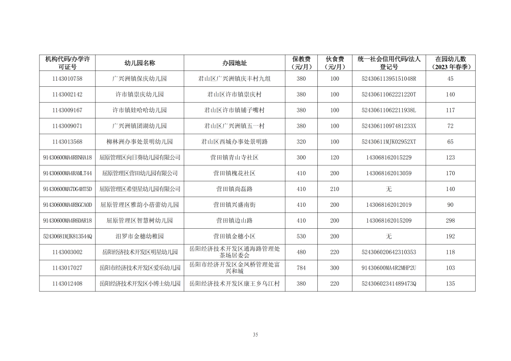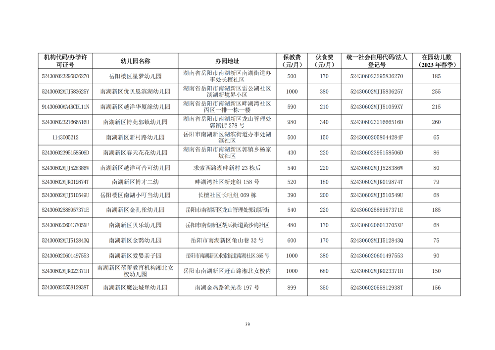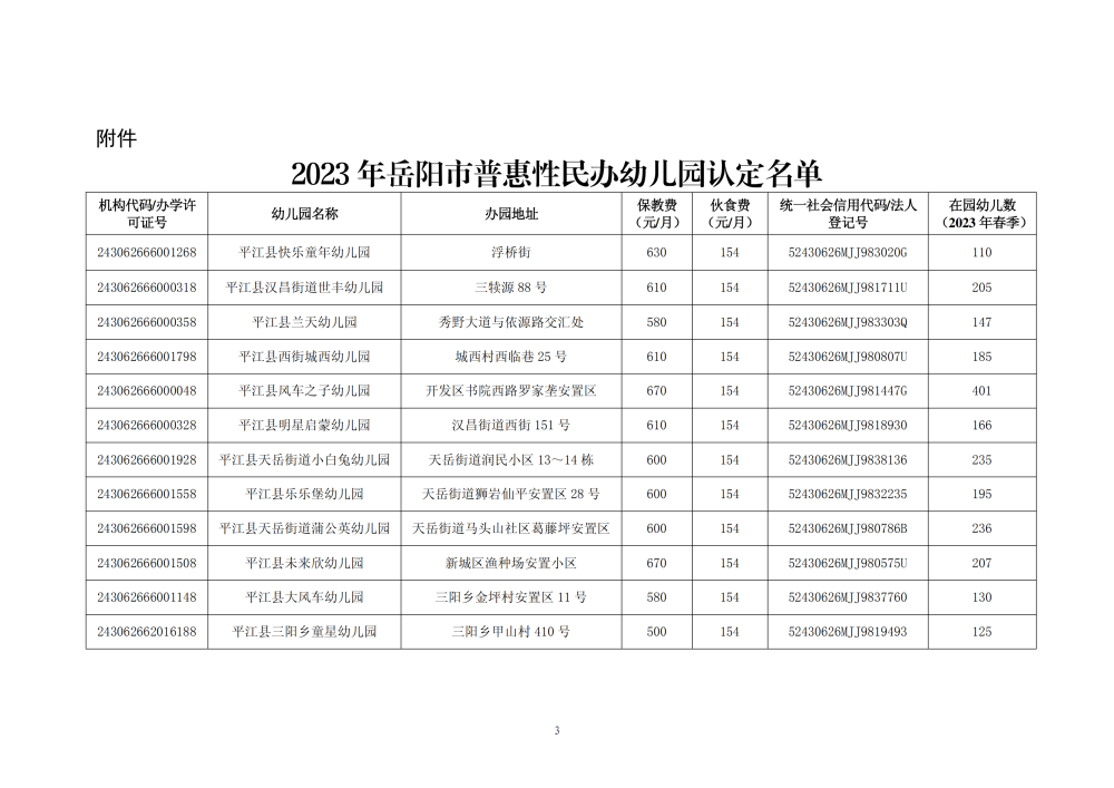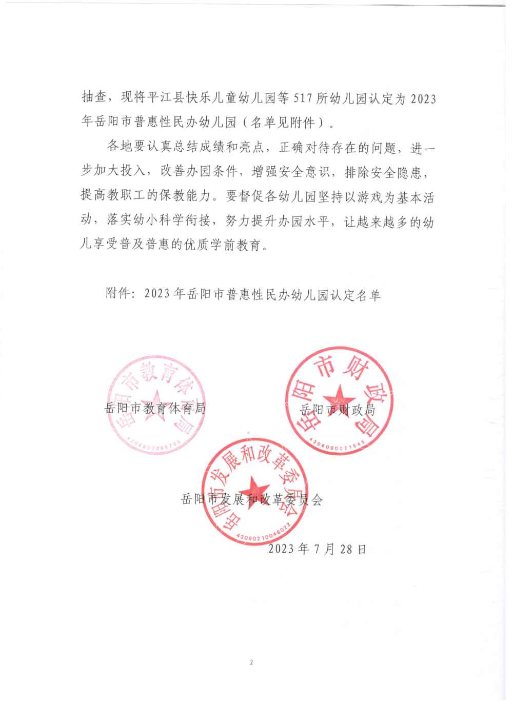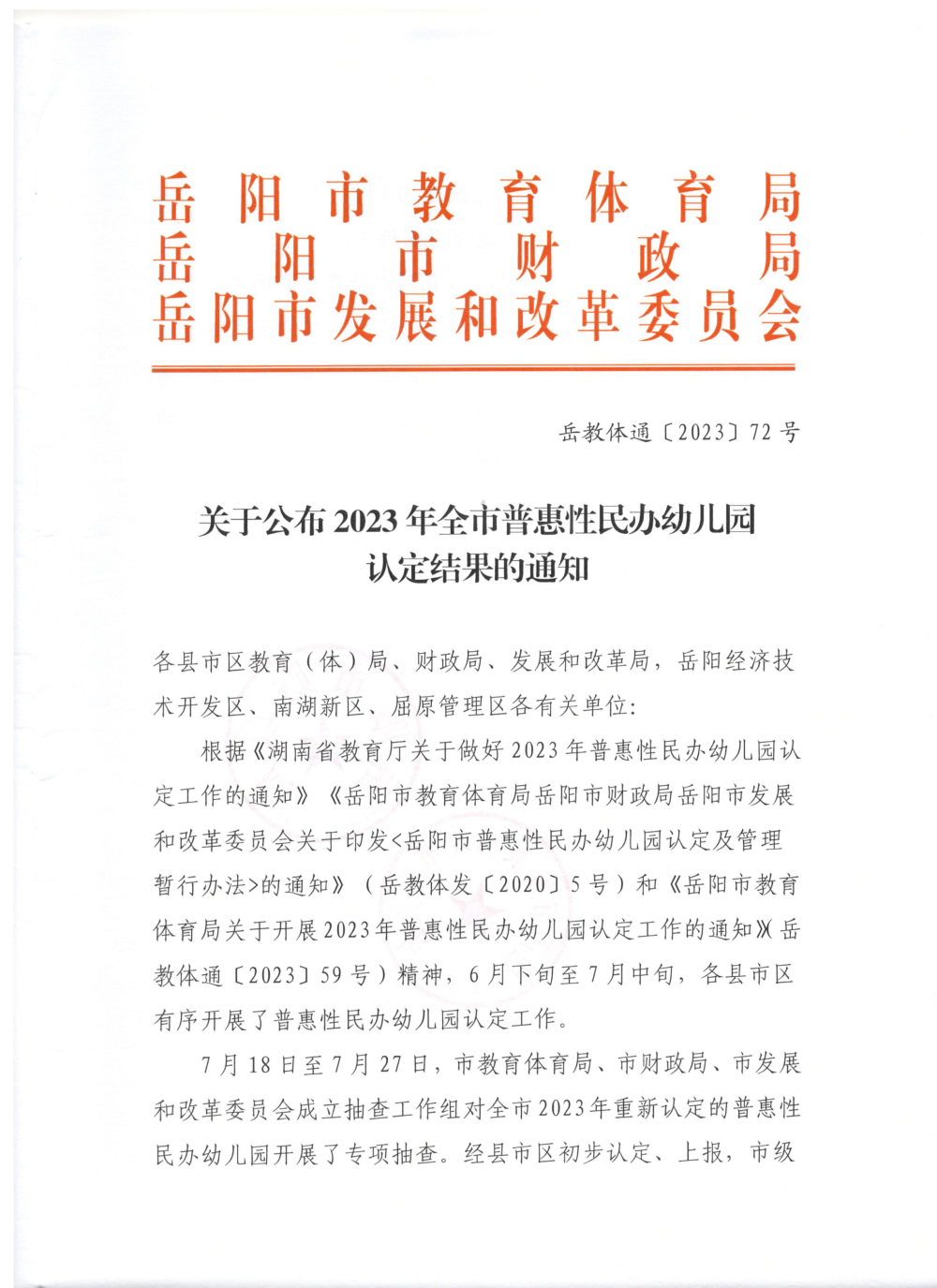 岳阳市教育体育局 岳阳市财政局 岳阳市发展和改革委员会 关于公布2023年全市普惠性民办幼儿园认定结果的通知(岳教体通〔2023〕72号)