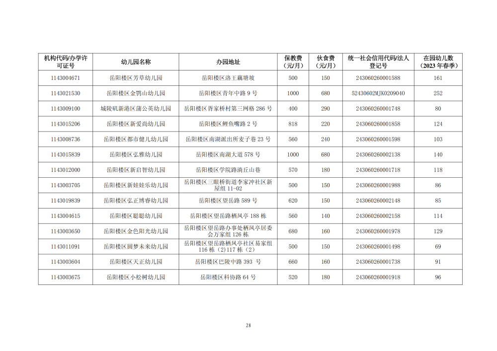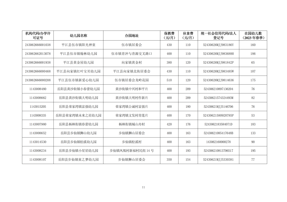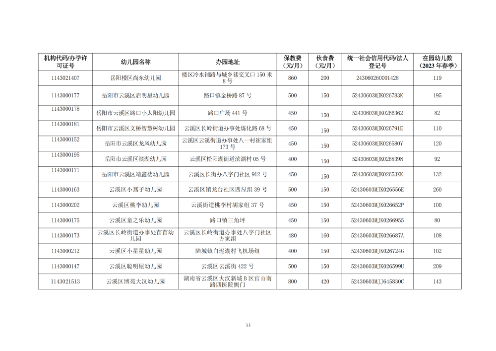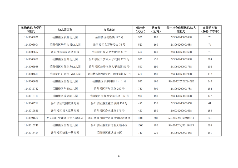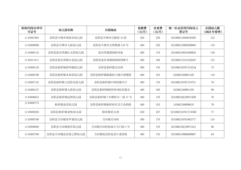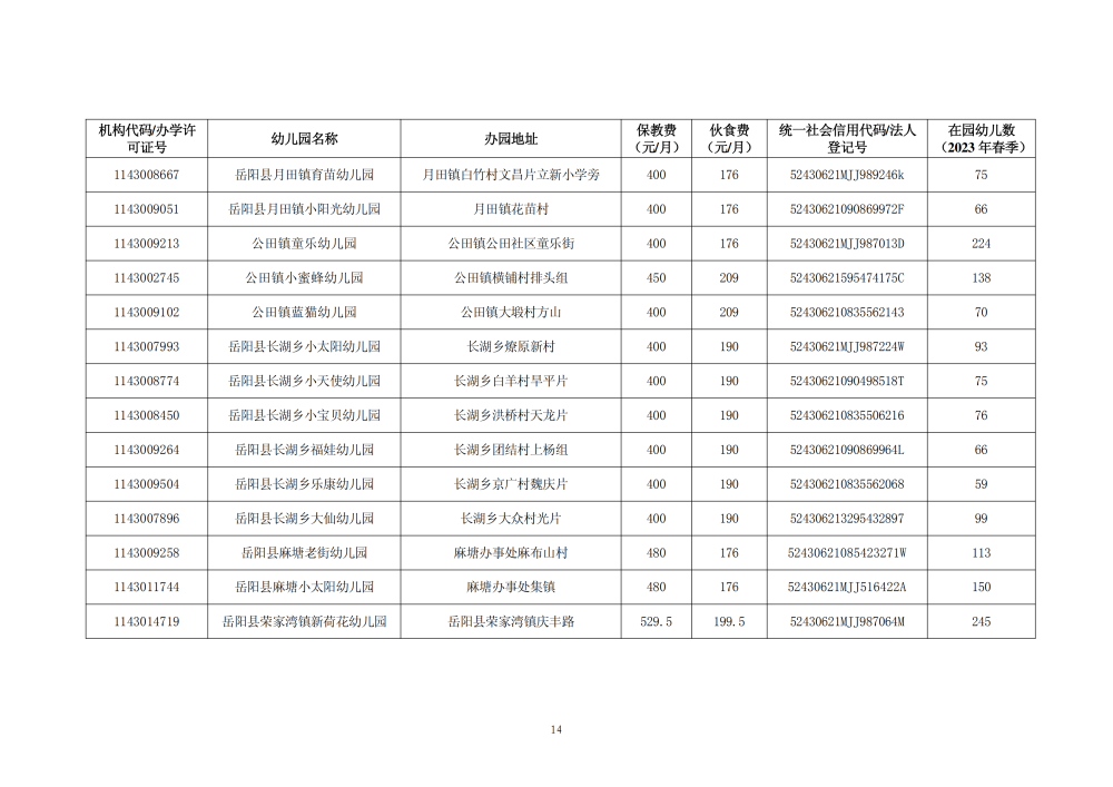 岳阳市教育体育局 岳阳市财政局 岳阳市发展和改革委员会 关于公布2023年全市普惠性民办幼儿园认定结果的通知(岳教体通〔2023〕72号)