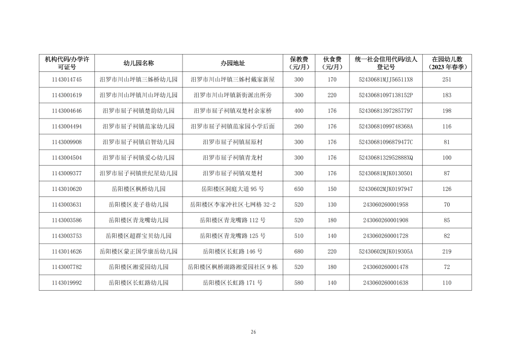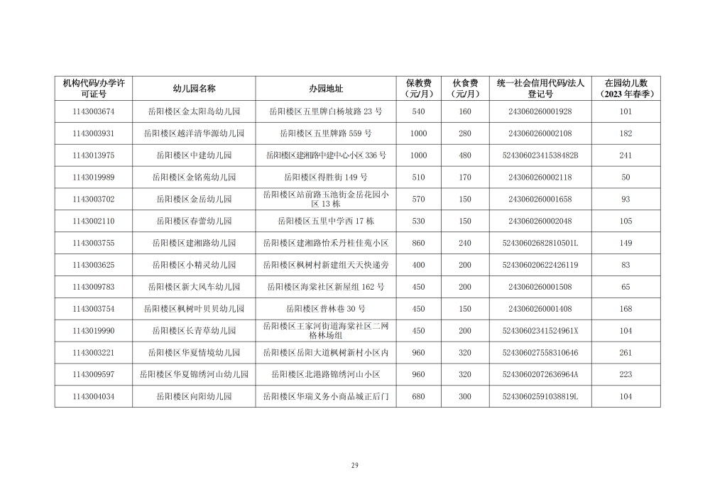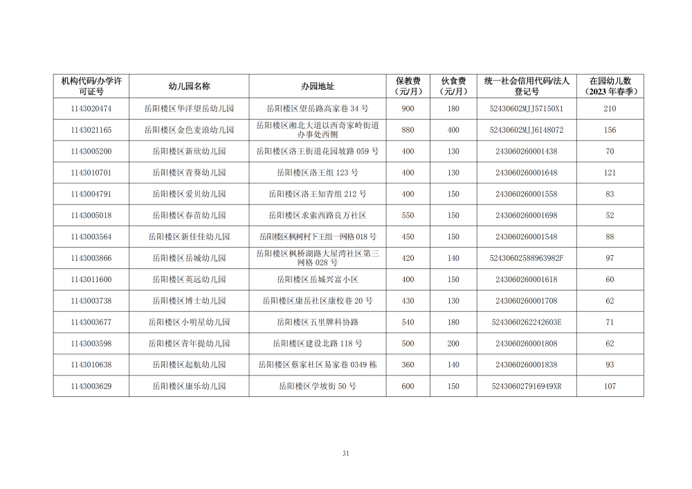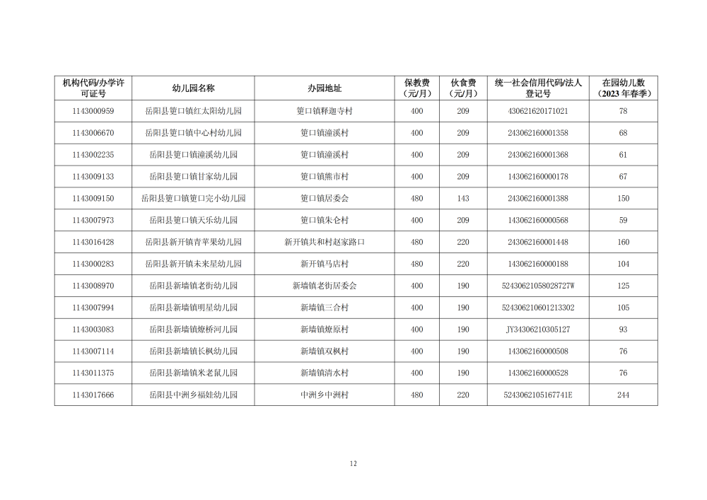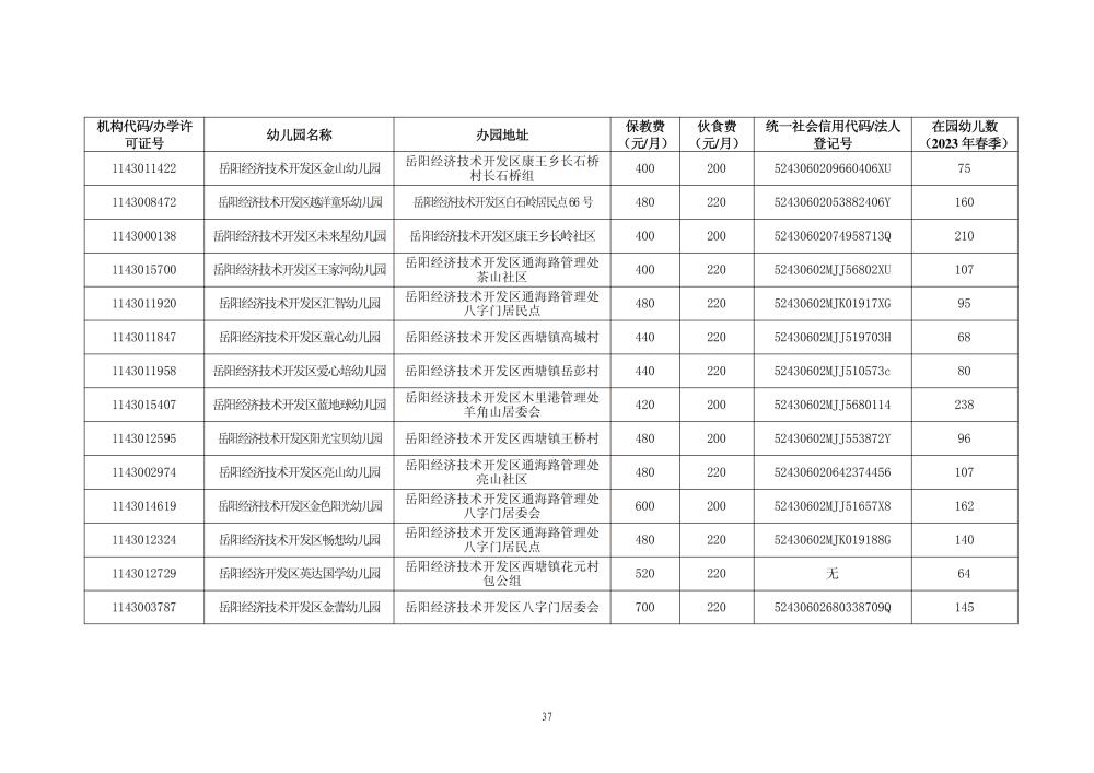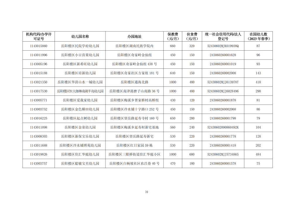 岳阳市教育体育局 岳阳市财政局 岳阳市发展和改革委员会 关于公布2023年全市普惠性民办幼儿园认定结果的通知(岳教体通〔2023〕72号)