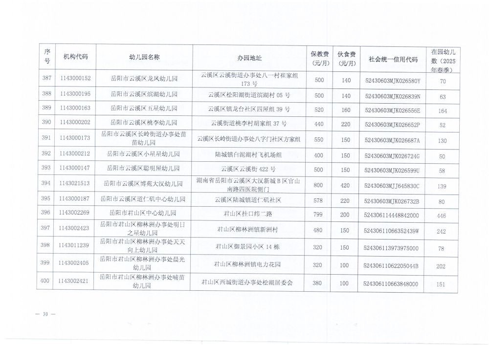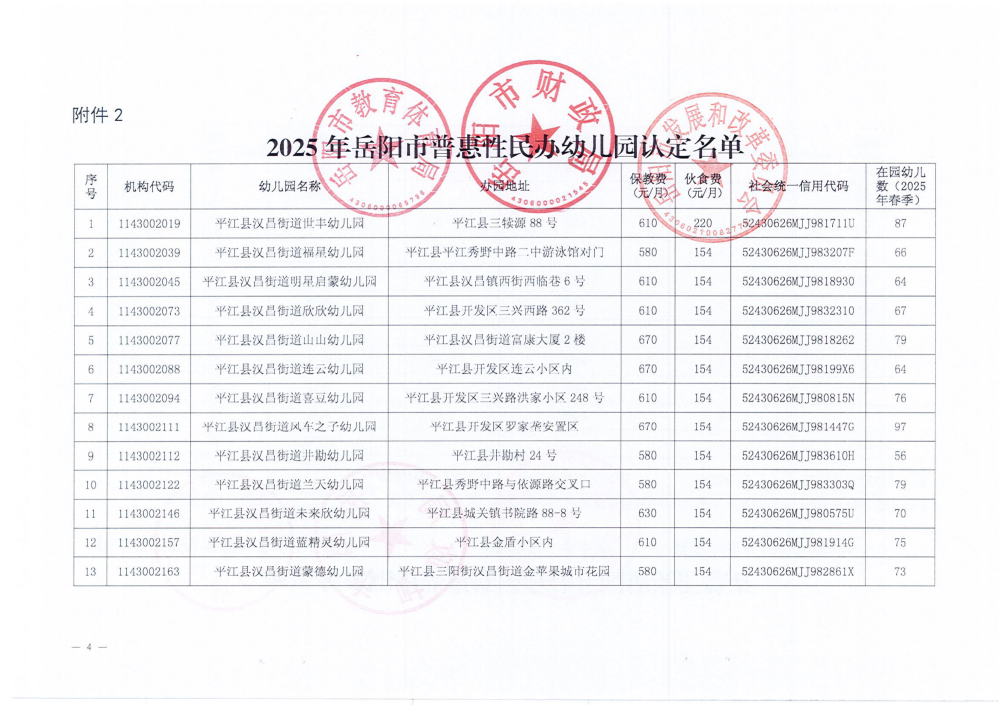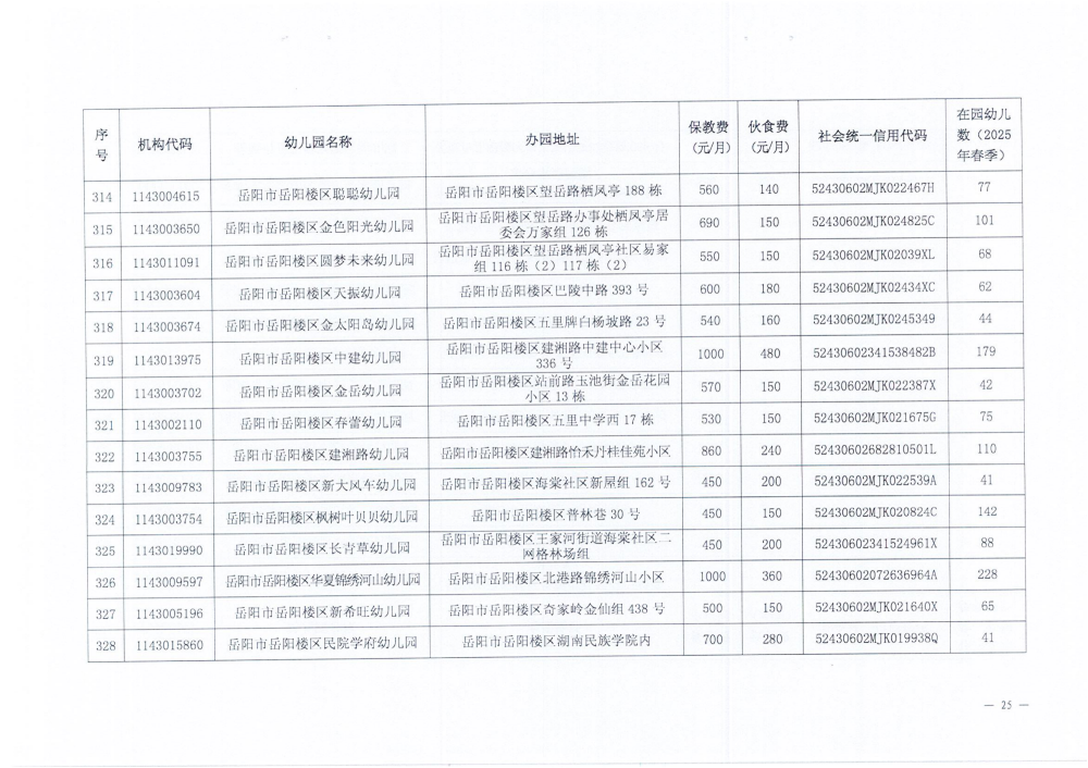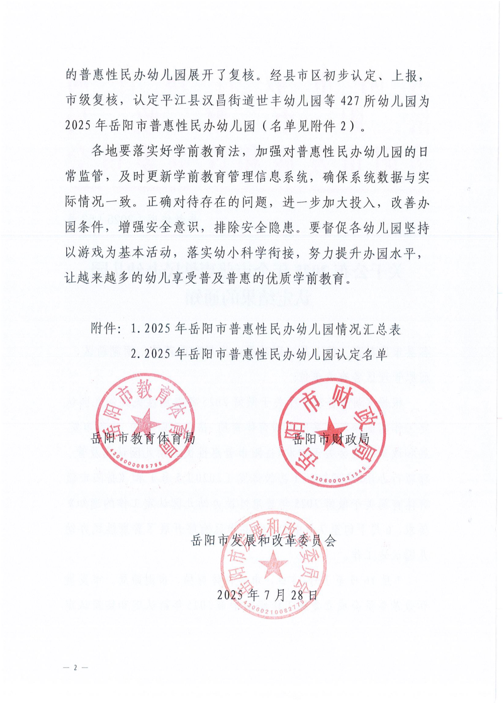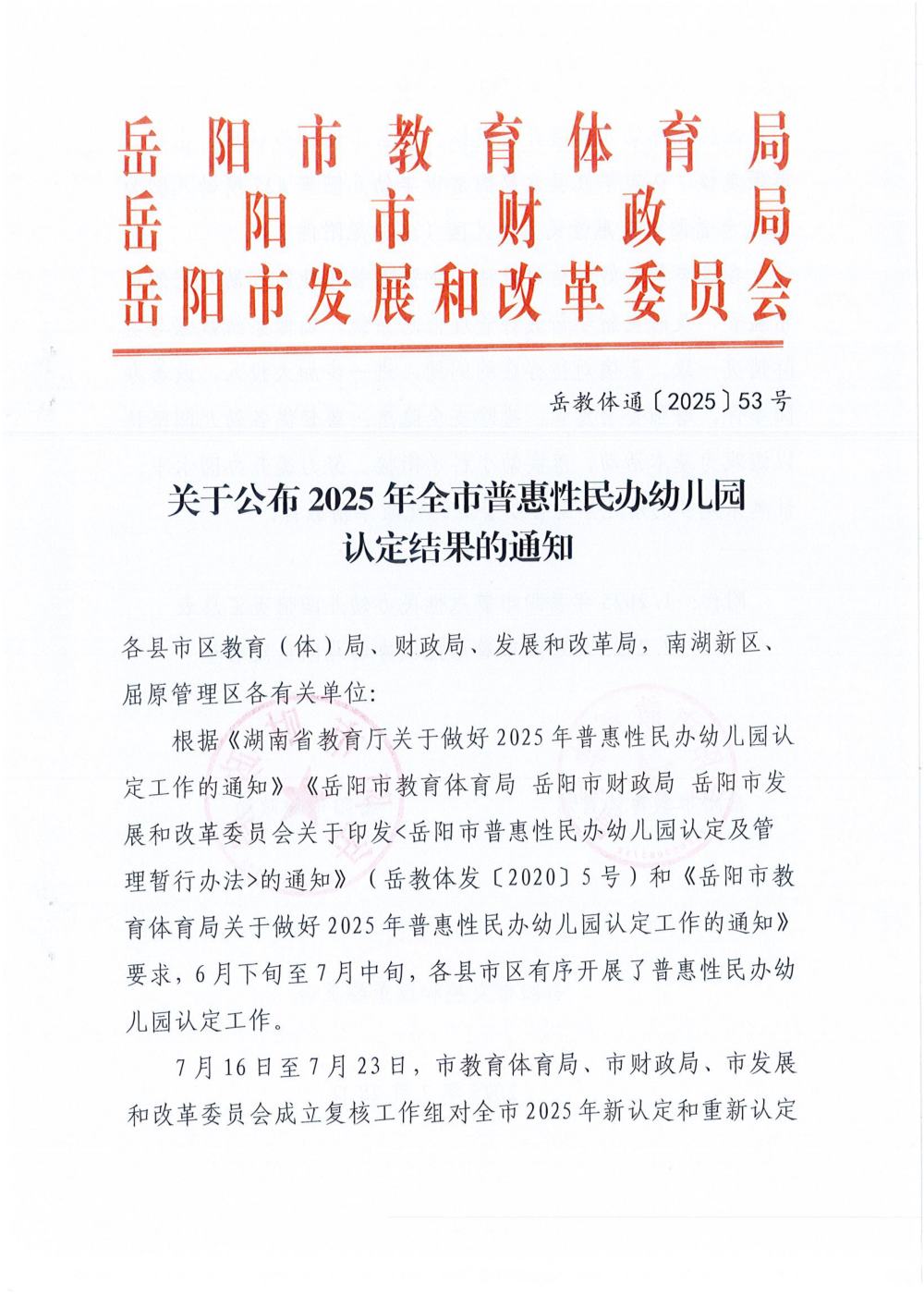 岳阳市教育体育局关于公布2025年全市普惠性民办幼儿园认定结果的通知(岳教体通〔2025〕53号)