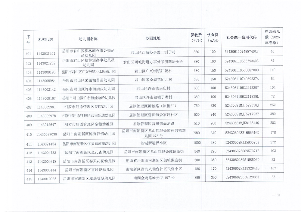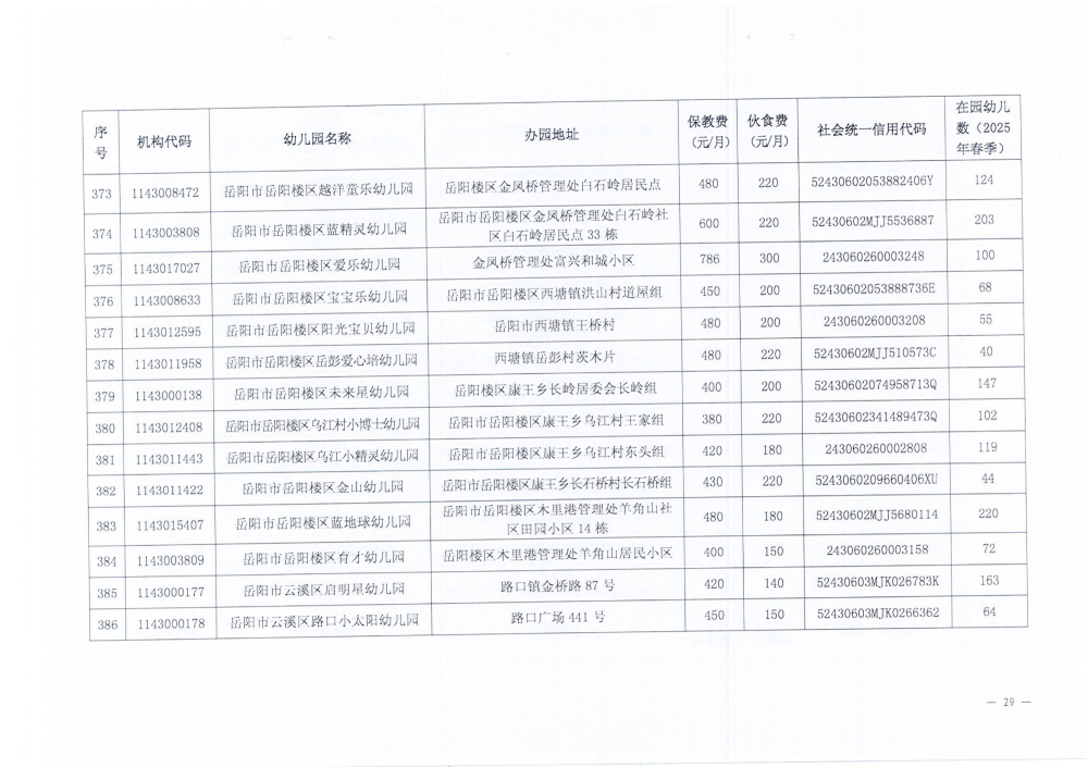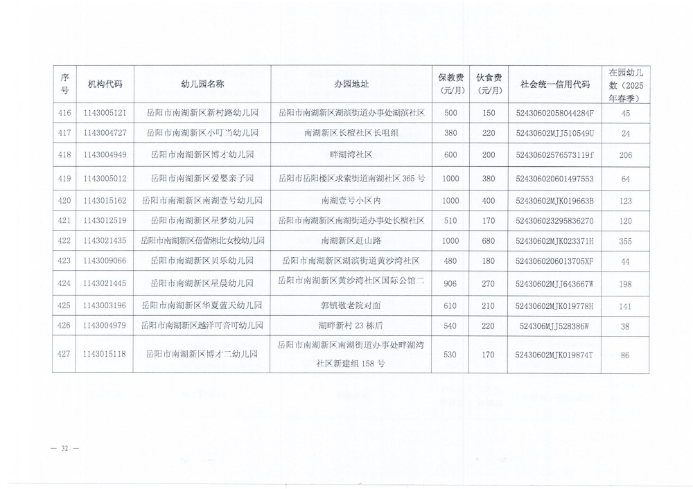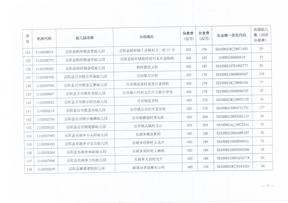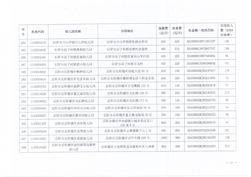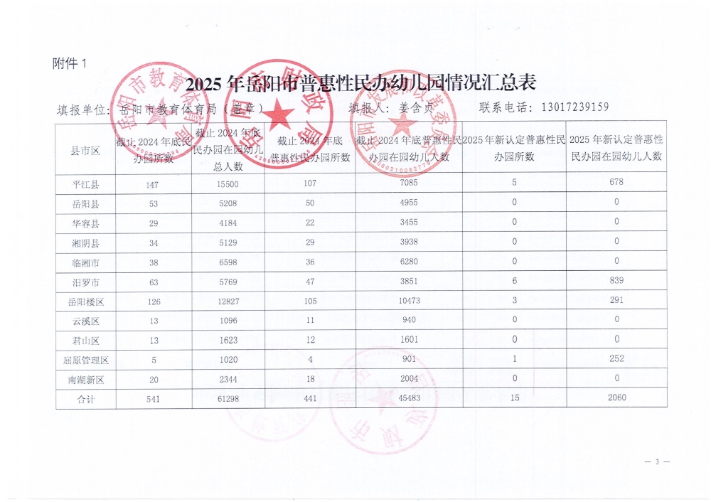 岳阳市教育体育局关于公布2025年全市普惠性民办幼儿园认定结果的通知(岳教体通〔2025〕53号)