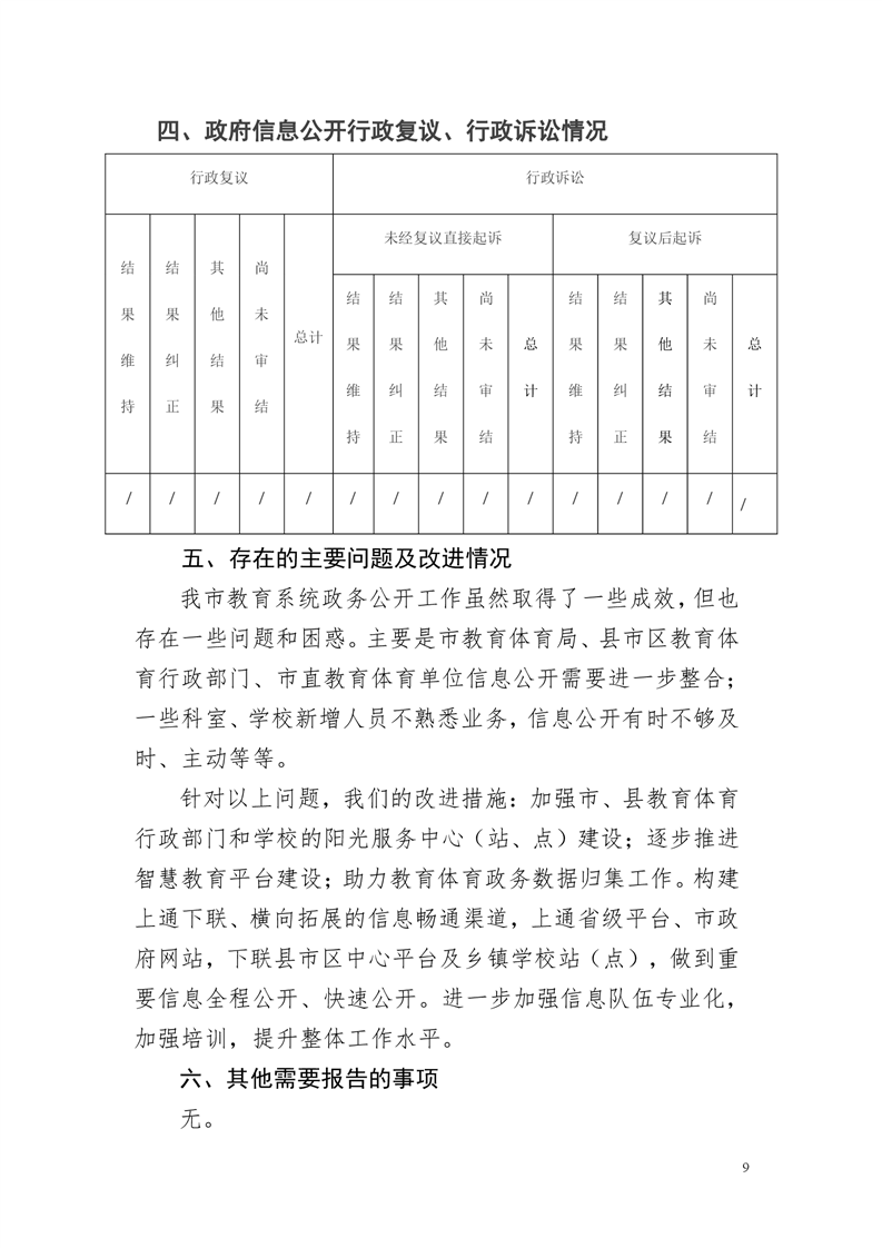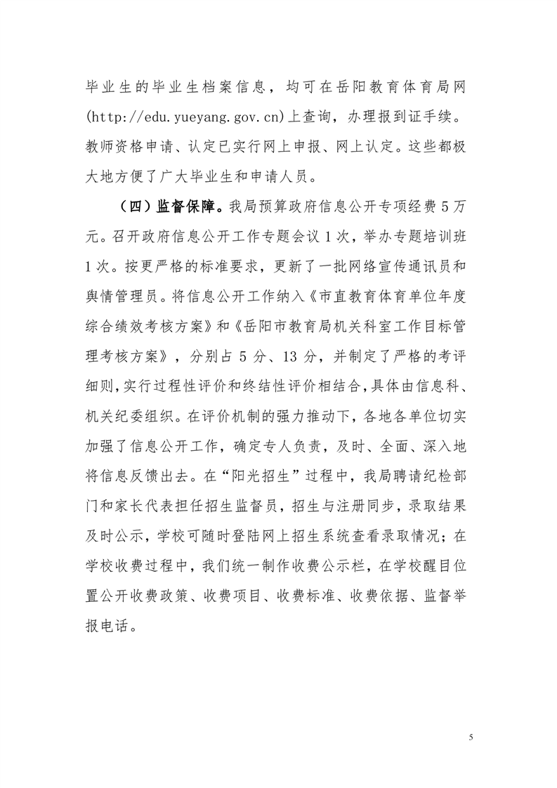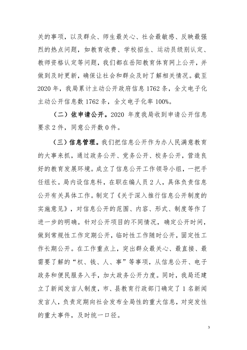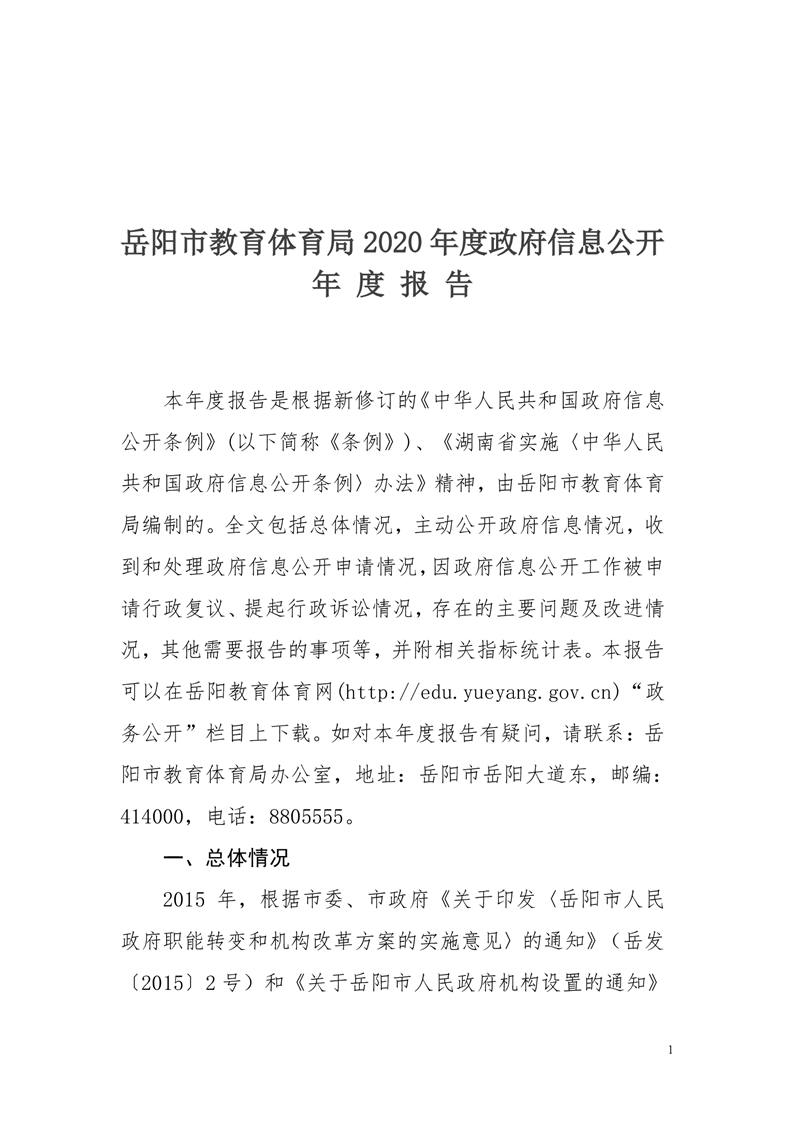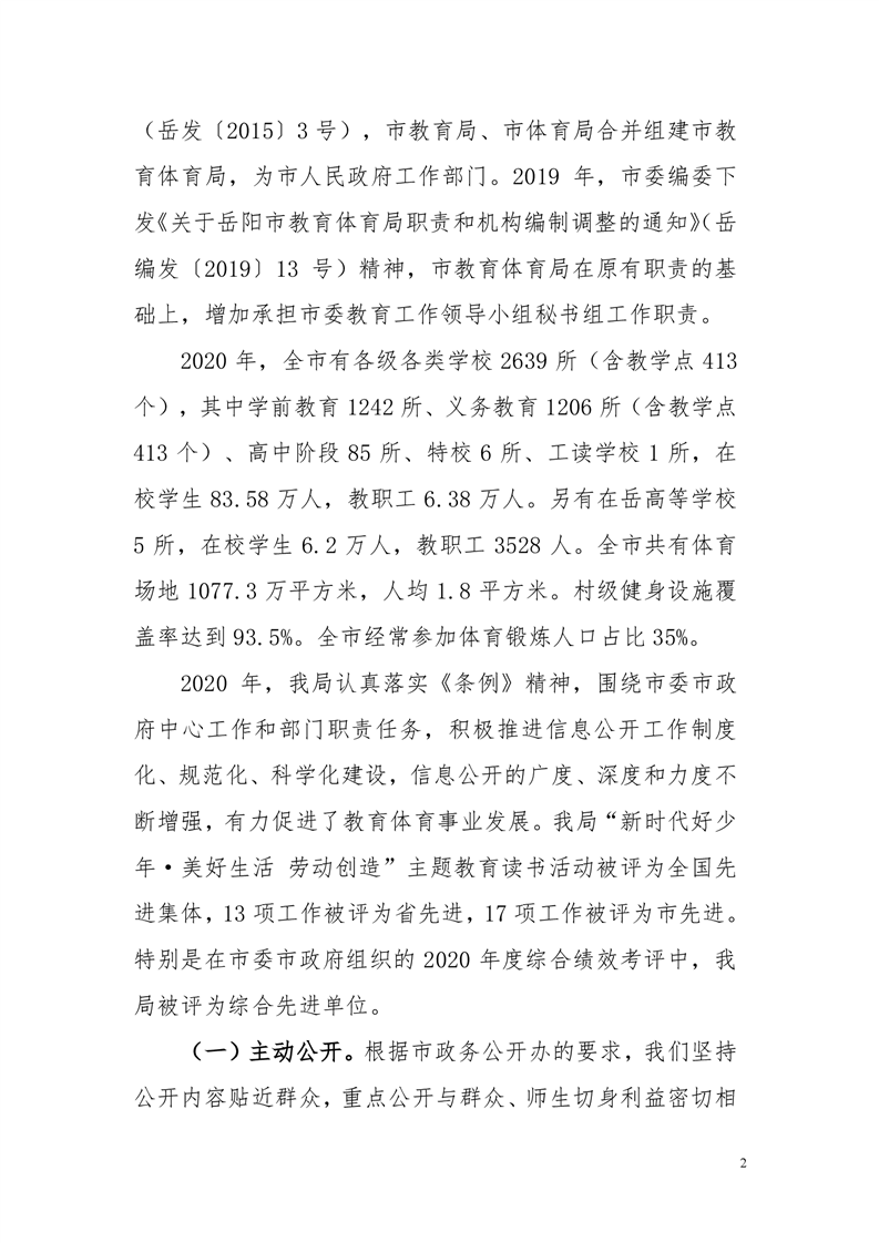 岳阳市教育体育局2020年度政府信息公开年度报告