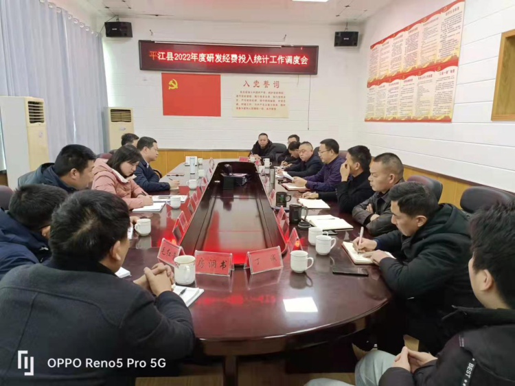 2月21日上午,平江县举行全社会研发投入统计培训会,这也是岳阳市各县市区开展的专项系列培训会的首场培训。市科技局党组书记、局长徐杰峰、平江县人民政府科技副县长吴舟全程聆听专题培训。市科技局党组成员、副局长李石六作培训动员讲话。平江县科技和工业信息化局党组书记、局长胡资源表示,这次研发投入统计年报工作,时间紧、任务重,科工信局会勇于担当,做到应纳尽纳、应统尽统,确保研发投入2021年报目标全面完成,努力实现2022年度研发投入工作提升进位。