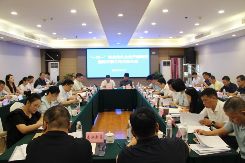 (2025年8月21日,全市科技创新赋能攻坚调度会上,部署推进全市科技系统“一对一”联点龙头企业开展科技服务工作。)