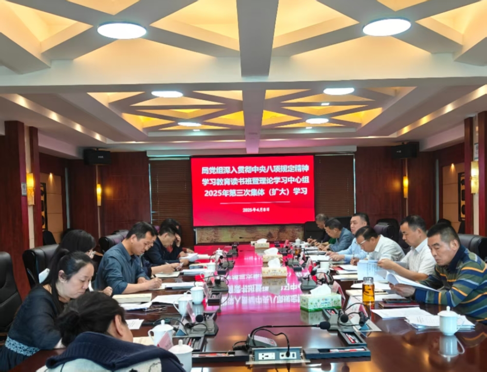 4月8日,局党组书记、局长刘爱军主持召开深入贯彻中央八项规定精神学习教育读书班暨理论学习中心组2025年第三次集体(扩大)学习,局党组全体成员、局直属单位主要负责人及局机关相关科室负责人参加学习。