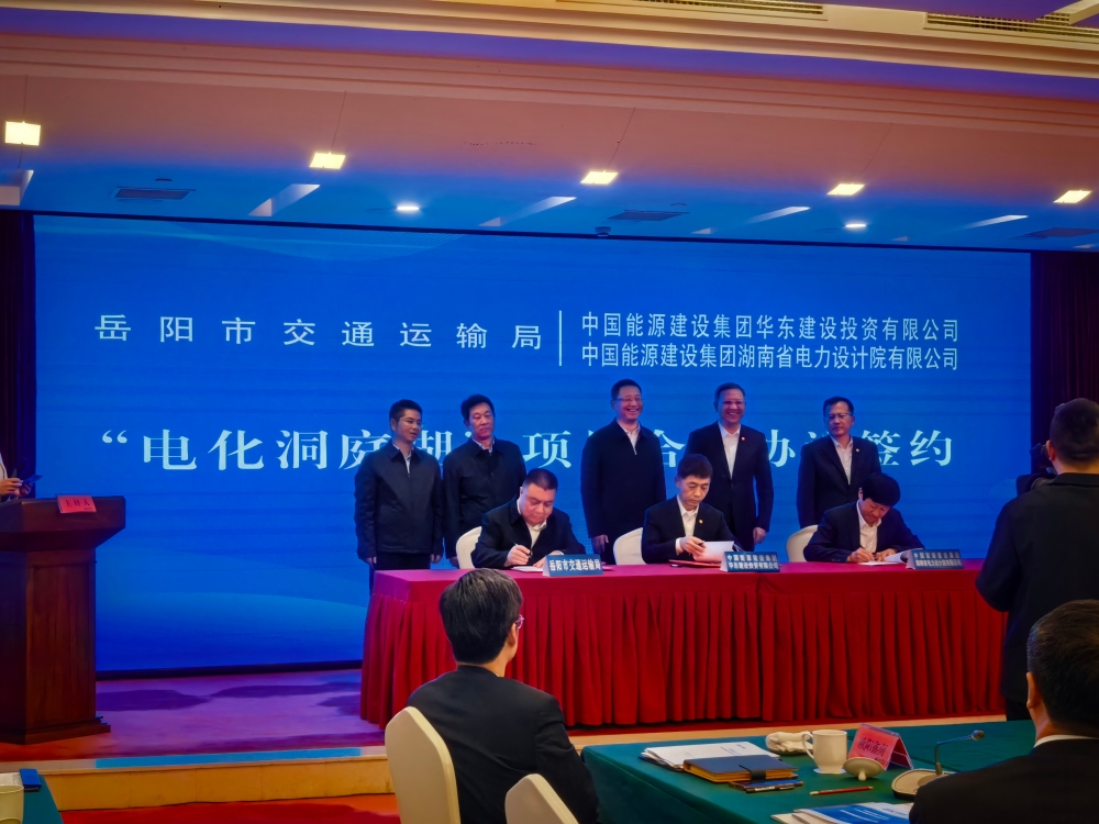10月27日,市政府与中国能源建设集团有限公司签署战略合作框架协议,市交通运输局与中国能建湖南省电力设计院有限公司、中国能建华东建设投资有限公司签署电化洞庭湖项目投资开发合作协议。省委副书记、岳阳市委书记谢卫江见证签约,并与中国能建党委副书记、总经理倪真一行座谈。市委副书记、市长李挚,省港航水利集团党委书记、董事长易放辉见证签约并参加座谈。