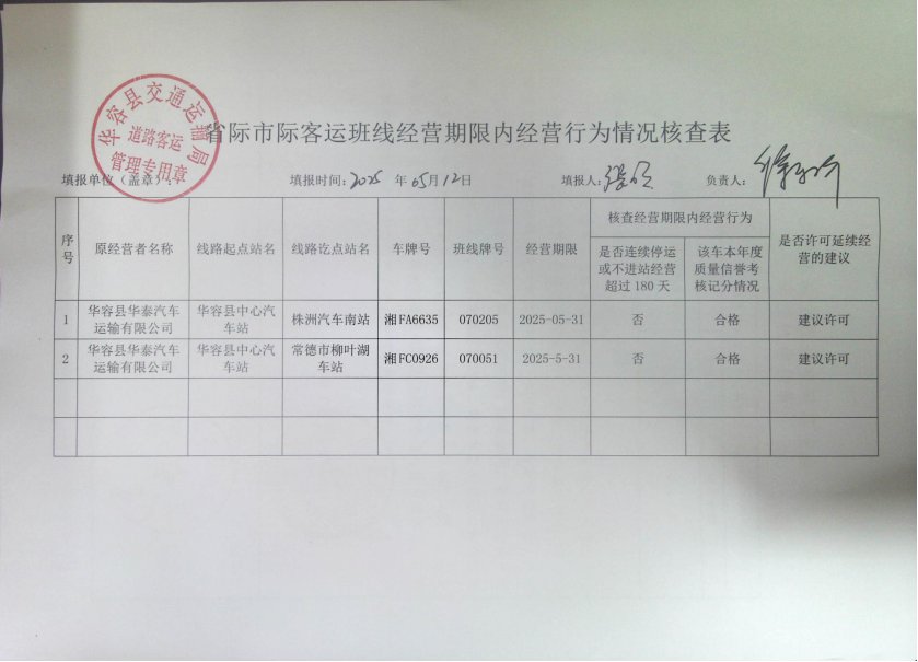 关于华容县华泰汽车运输有限公司株洲、常德班线延续经营的公示