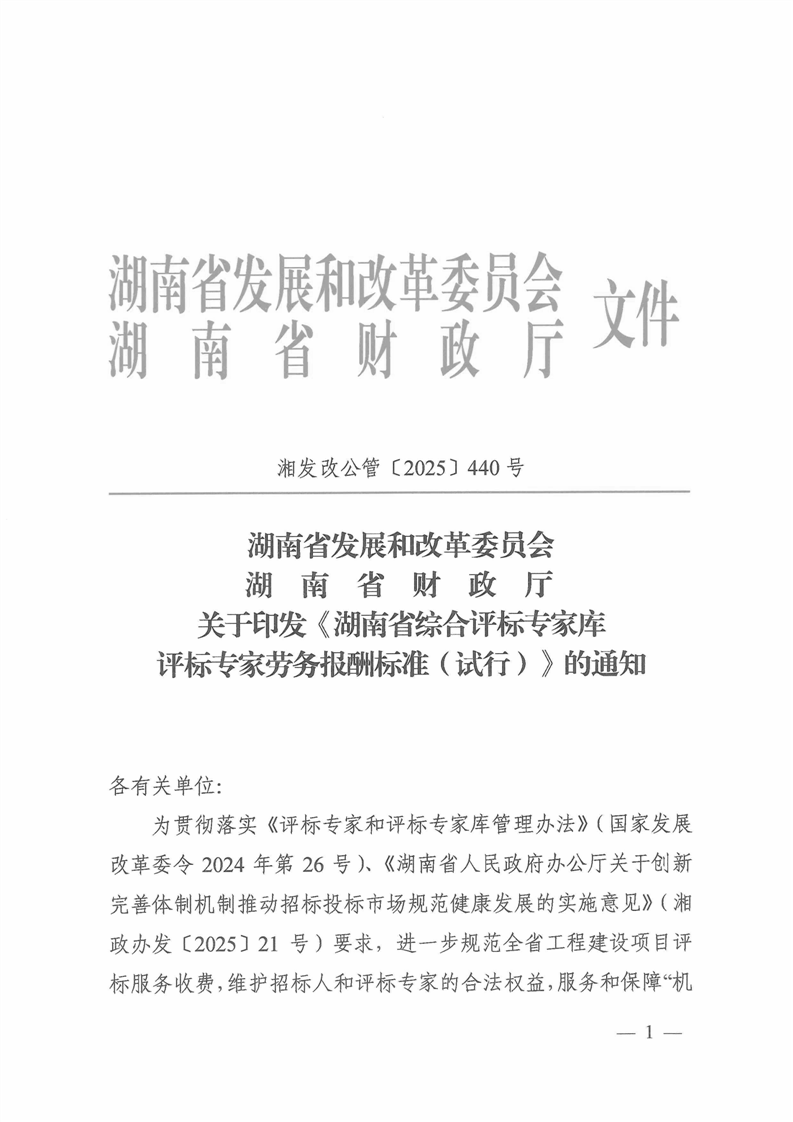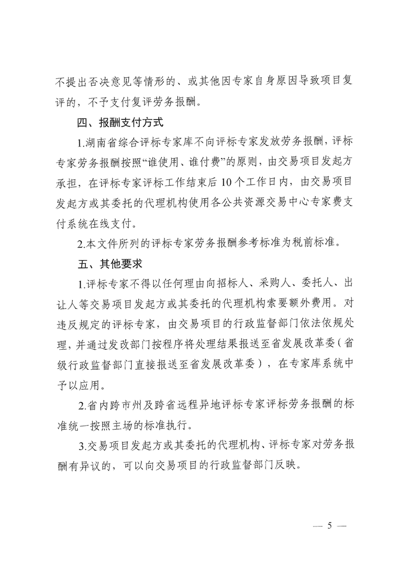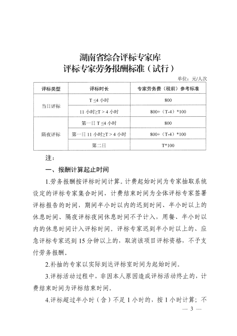 关于印发《湖南省综合评标专家库评标专家劳务报酬标准(试行)》的通知