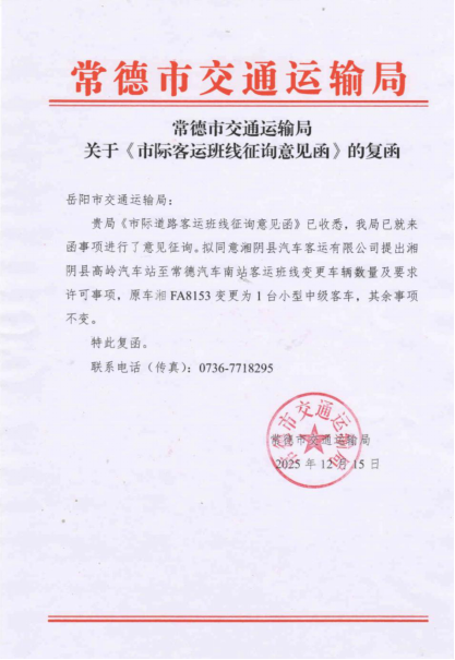 现将我局受理的道路旅客运输相关事项进行公示,如有意见或建议的,请于公示之日起5个工作日内书面向我局行政审批科反映,并在反映材料上署名,所反映的内容必须真实。