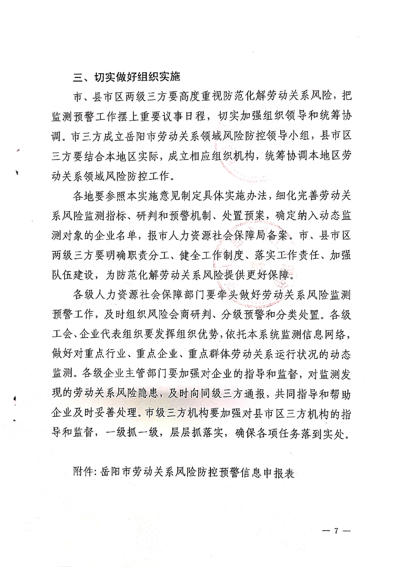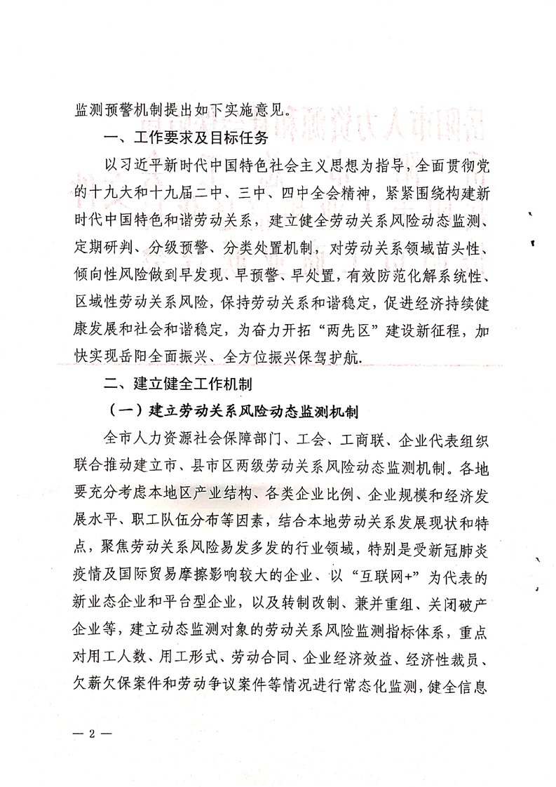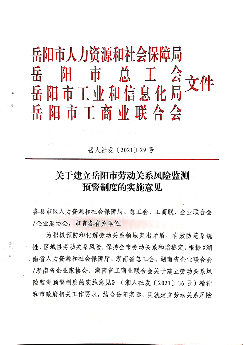 关于建立岳阳市劳动关系风险监测预警制度的实施意见