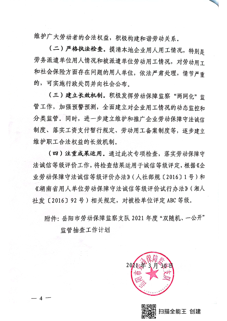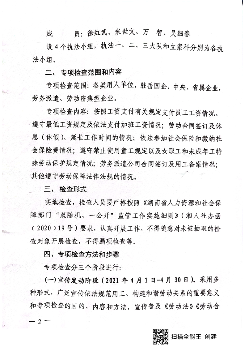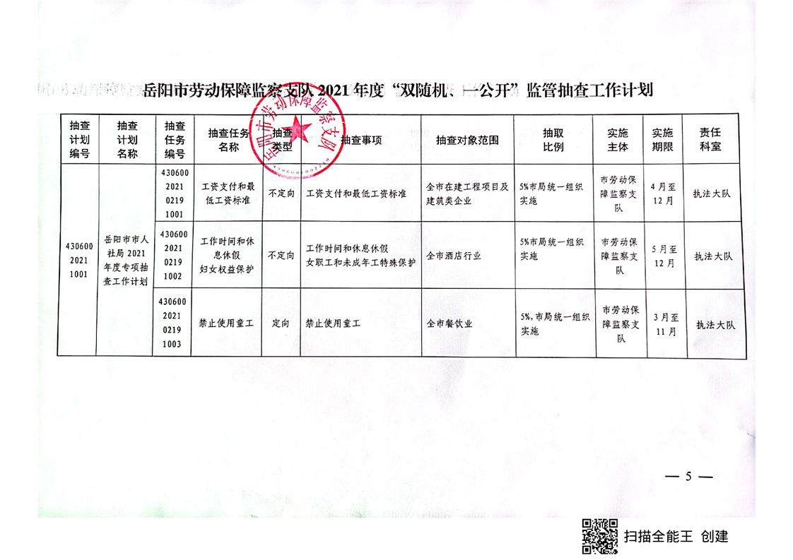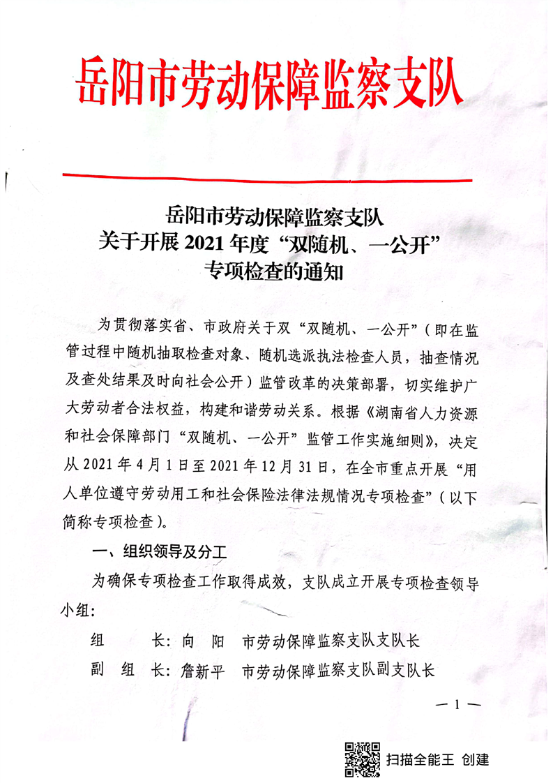 岳阳市劳动保障监察支队关于开展2021年度“双随机、一公开”专项检查的通知