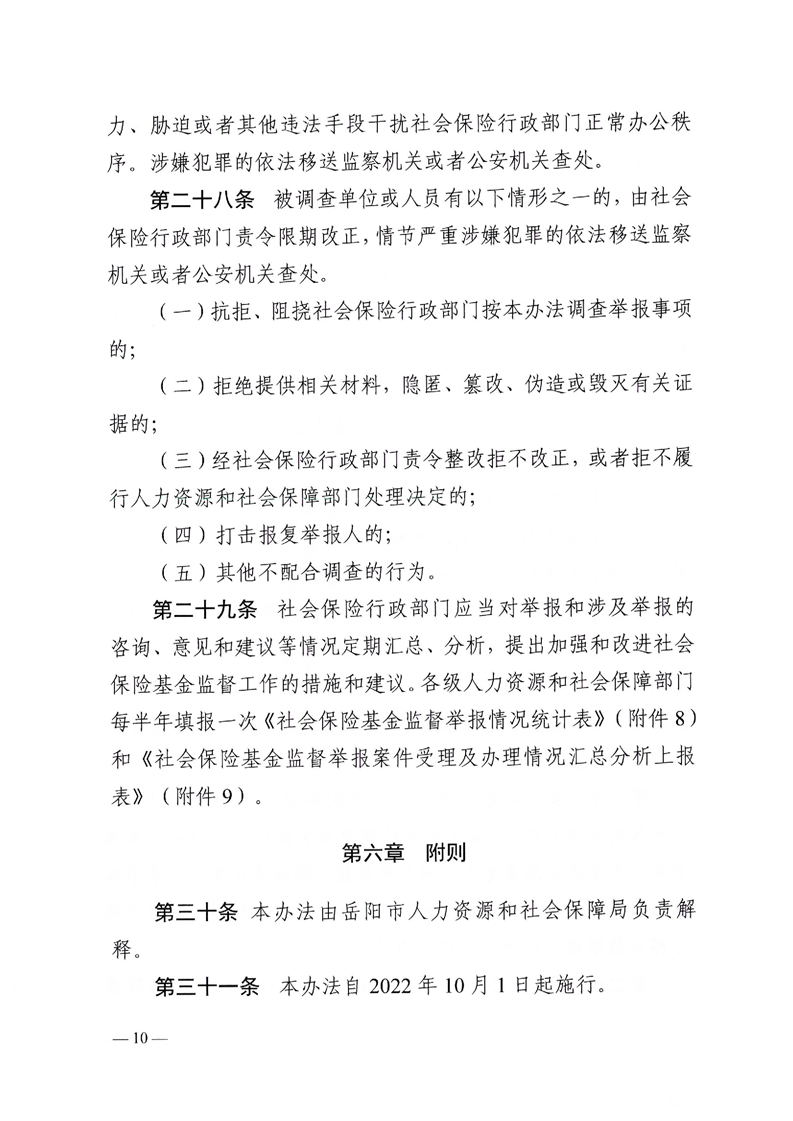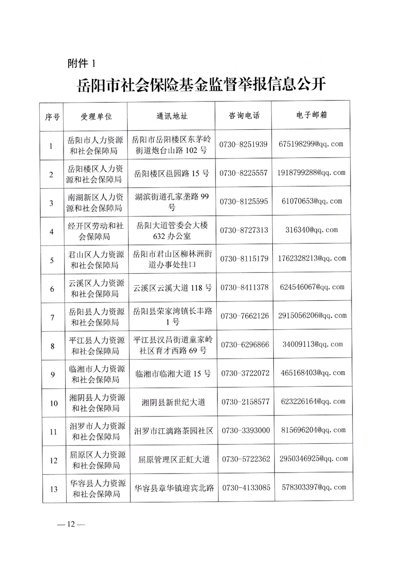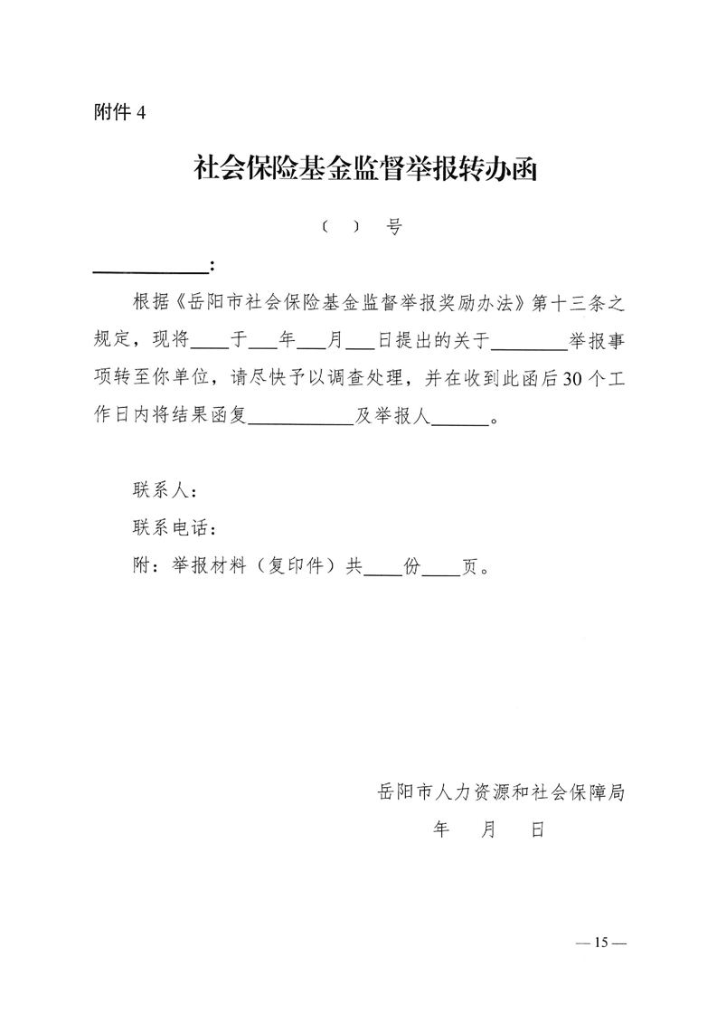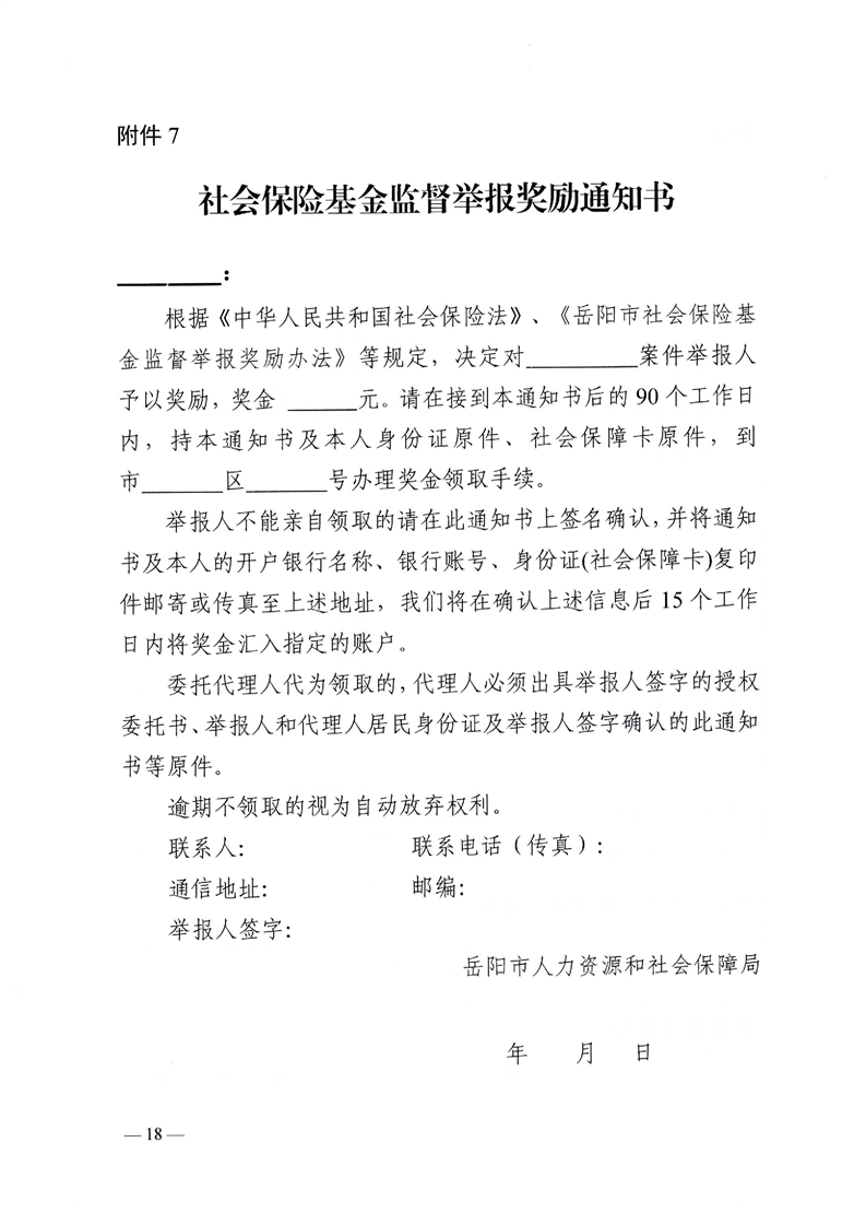 关于印发《岳阳市社会保险基金监督举报奖励办法》的通知