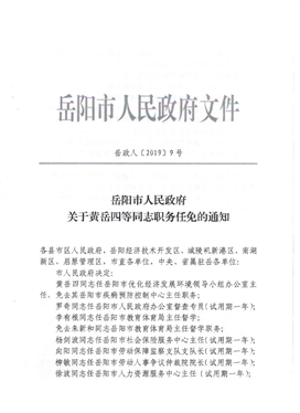 岳阳市人民政府关于黄岳四等同志职务任免的通知