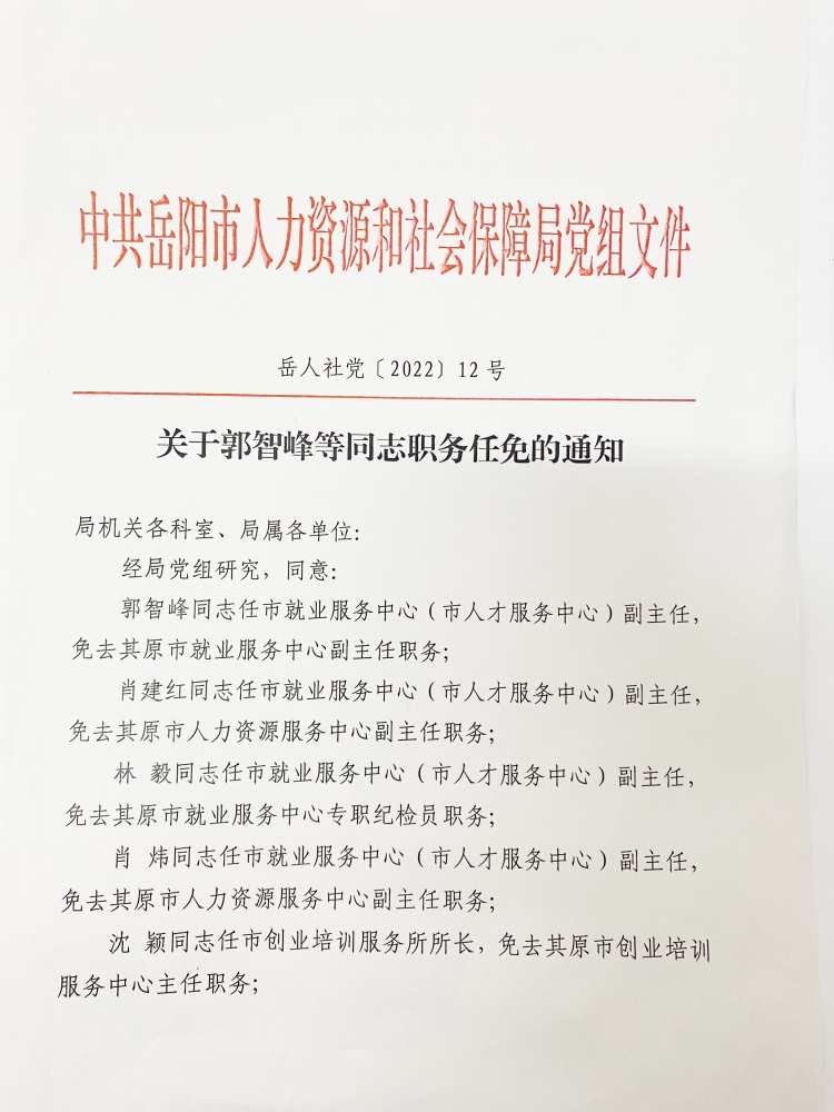 关于郭志峰等同志任免的通知