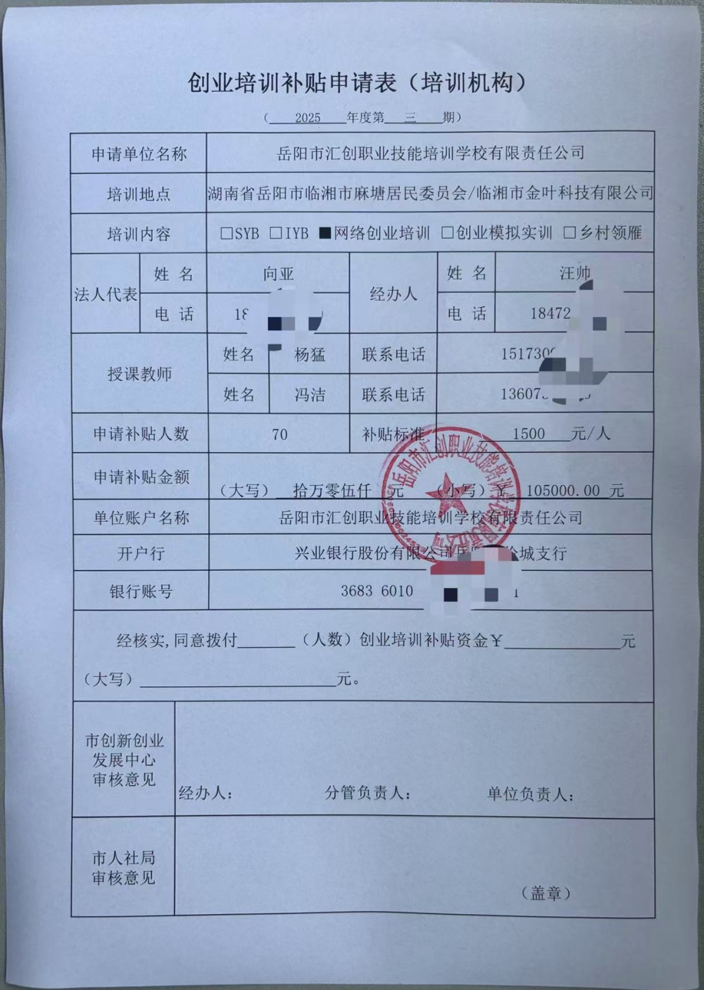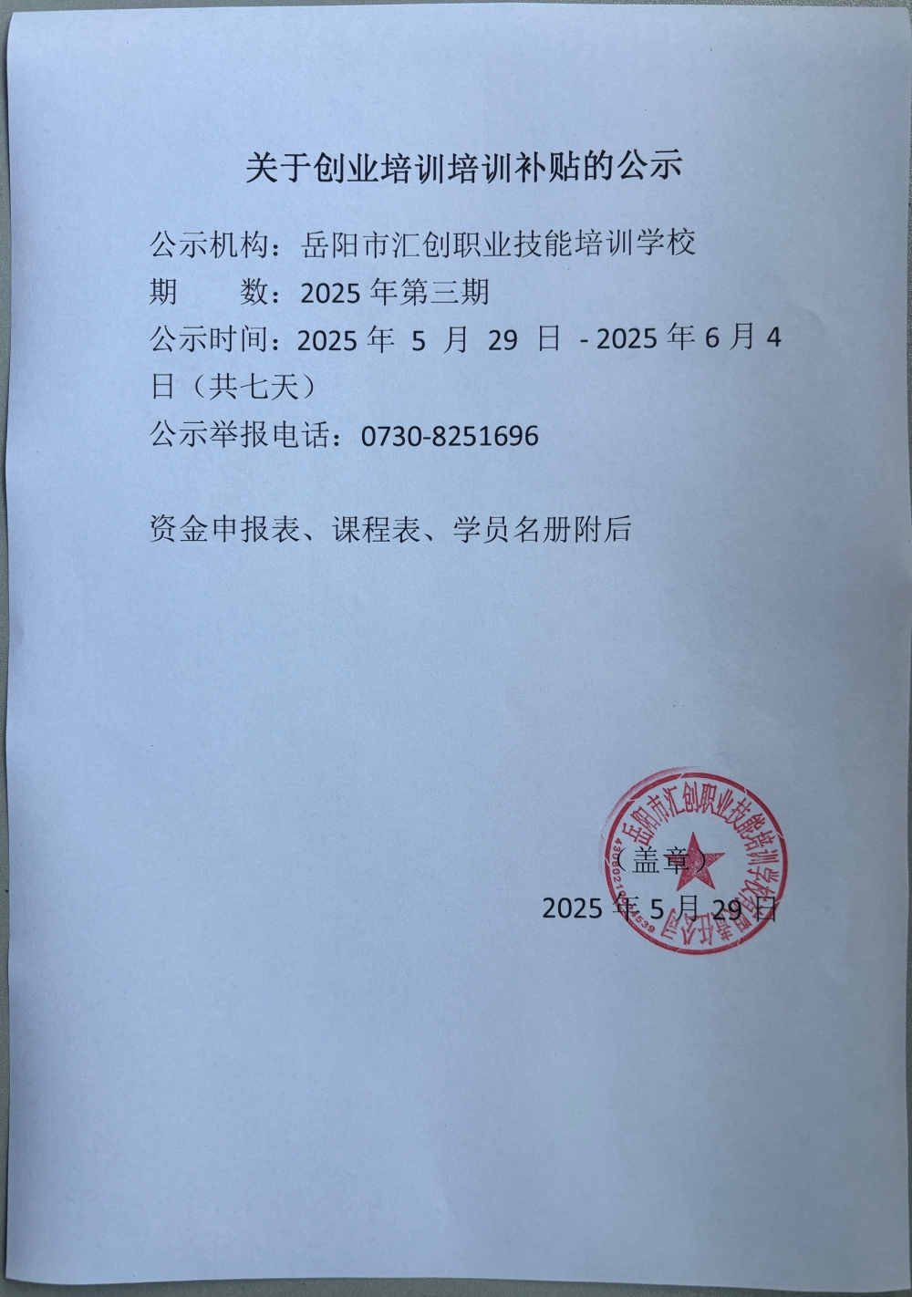 岳阳市汇创职业技能培训学校有限责任公司2025年第三期一班网创培花名册.xls 岳阳市汇创职业技能培训学校有限责任公司2025年第三期二班网创培花名册.xls 岳阳市汇创职业技能培训学校有限责任公司2025年第三期一班网络创业培训(直播版)学员班课程安排表.xlsx 岳阳市汇创职业技能培训学校有限责任公司2025年第三期二班网络创业培训(直播版)学员班课程安排表.xlsx