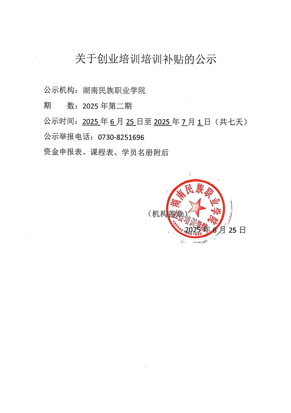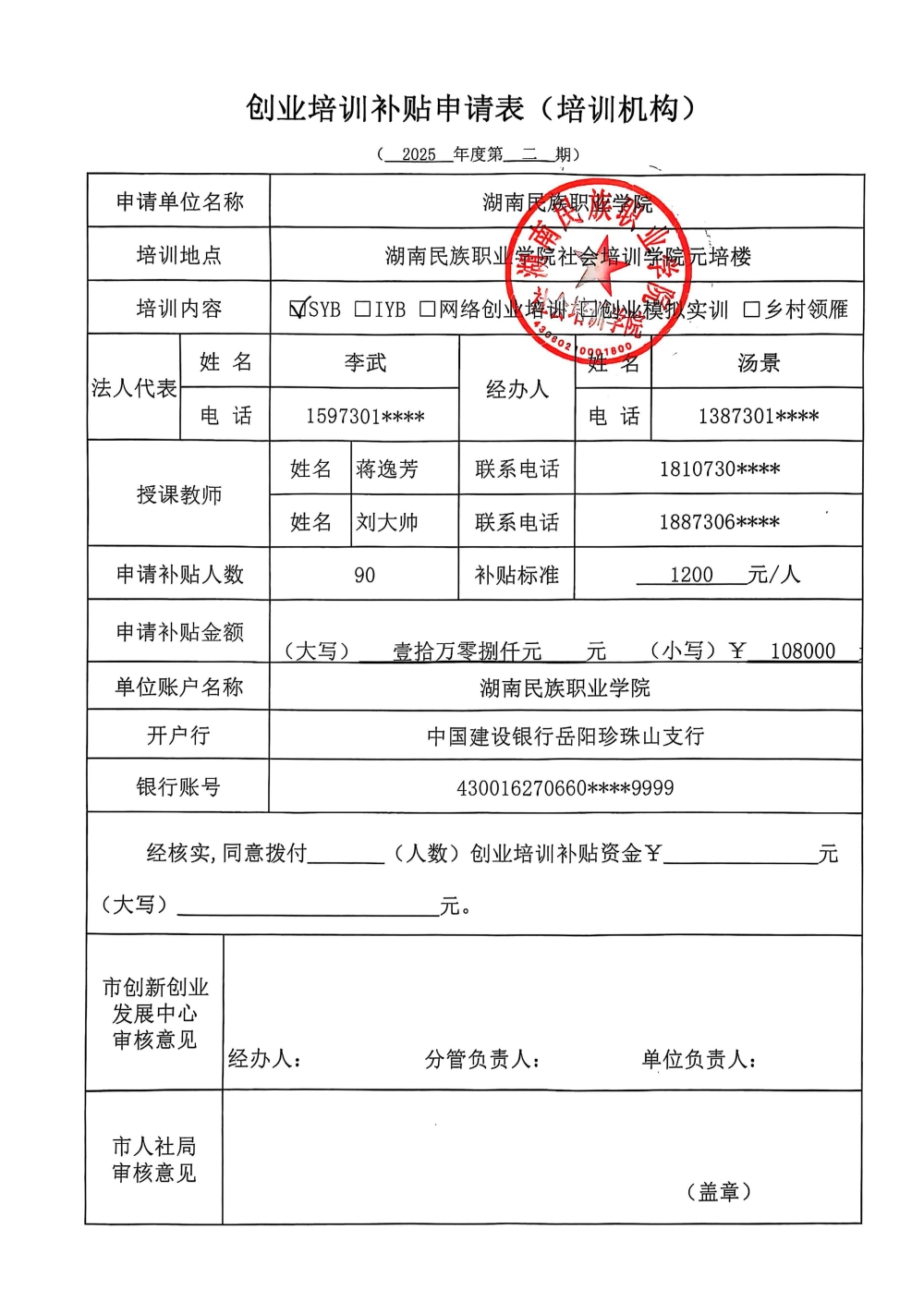 湖南民族职业学院2025年第二期SYB创业培训资金申请表、课程表、学员名册