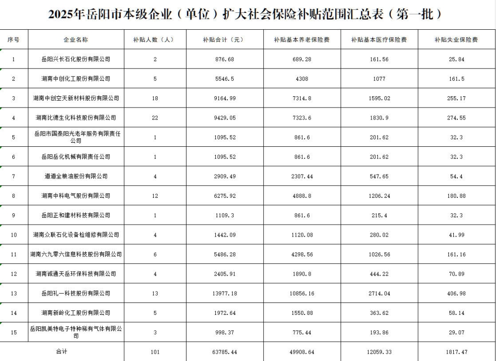 现将2025年岳阳市本级第一批企业(单位)社保补贴扩围名单予以公示。公示时间:2025年11月7日至2025年11月14日,公示期间如有异议,请及时实名反映。
