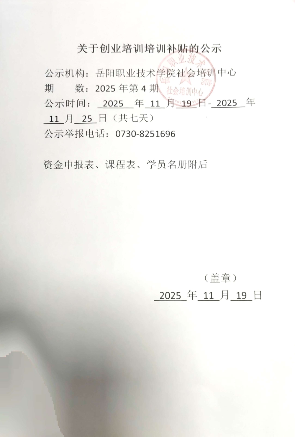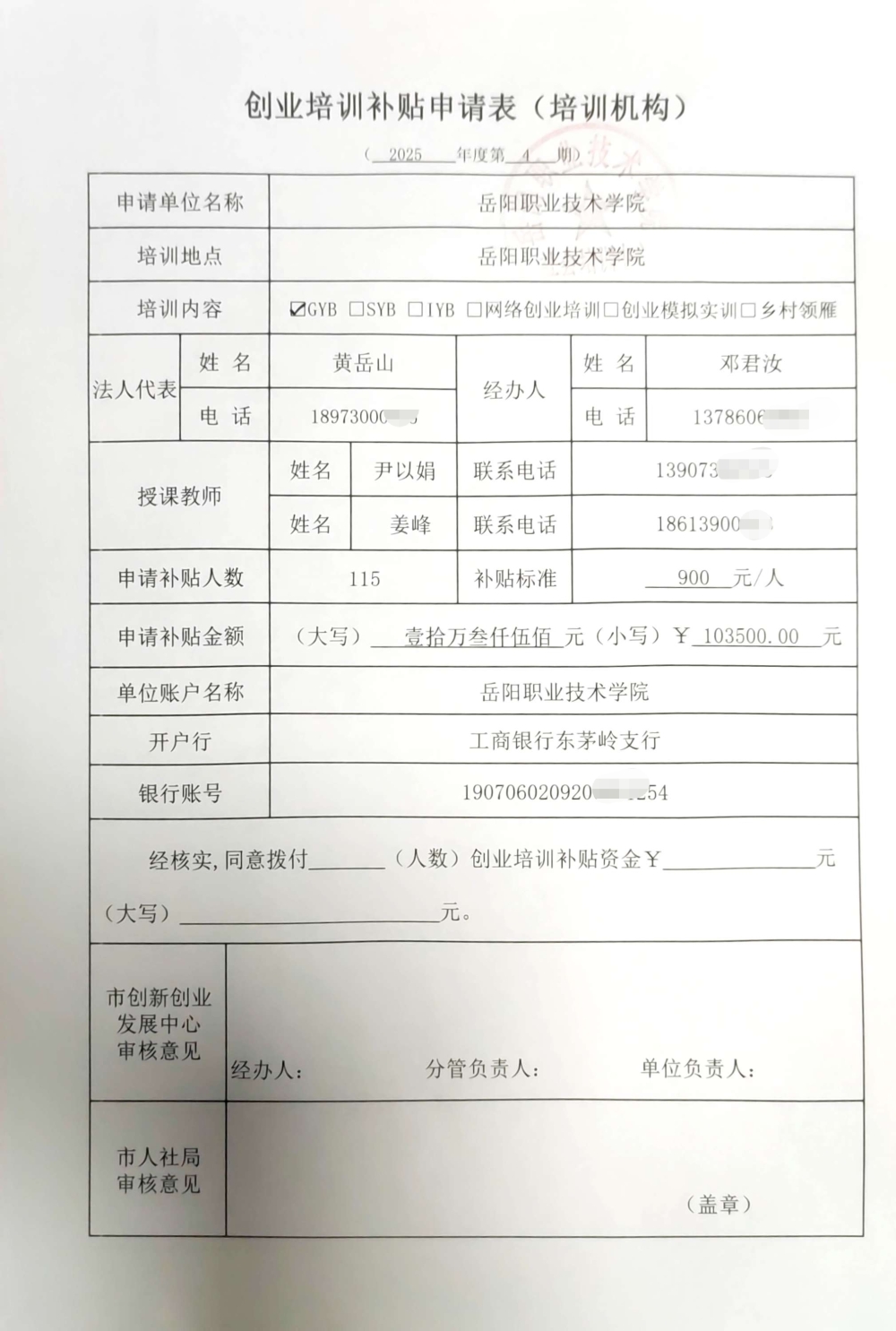 岳阳职业技术学院2025年第四期GYB创业培训资金申请表、课程表、学员名册