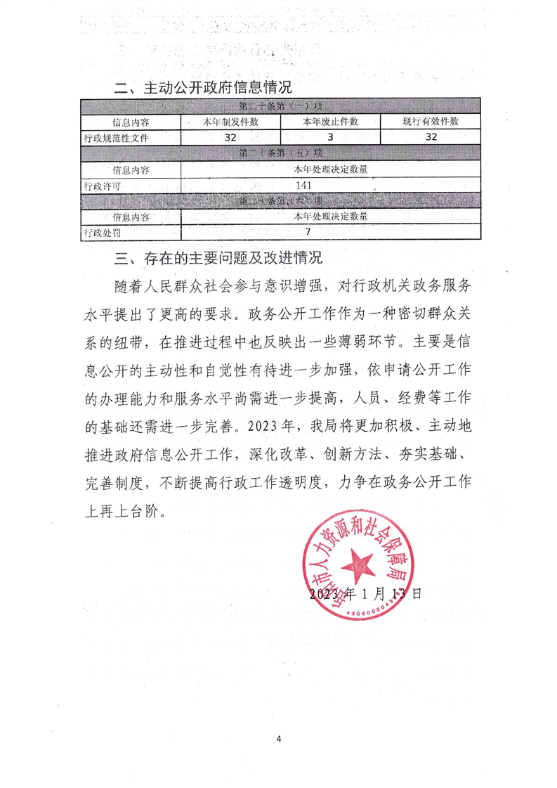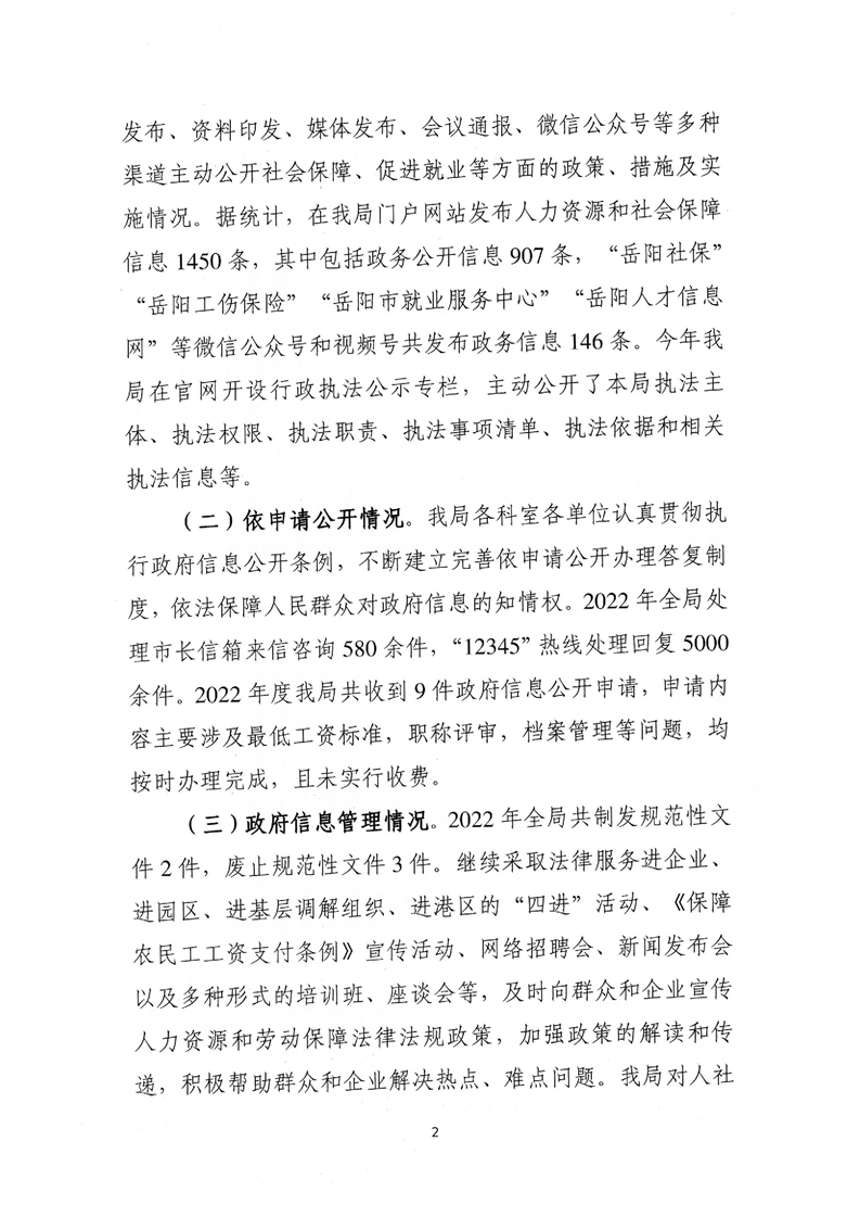 岳阳市人力资源和社会保障局2022年政府信息公开年度工作报告