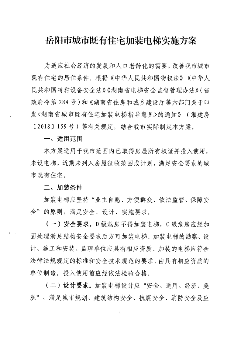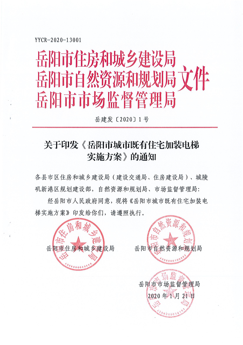 岳阳市住房和城乡建设局关于印发《岳阳市城市既有住宅加装电梯实施方案》的通知