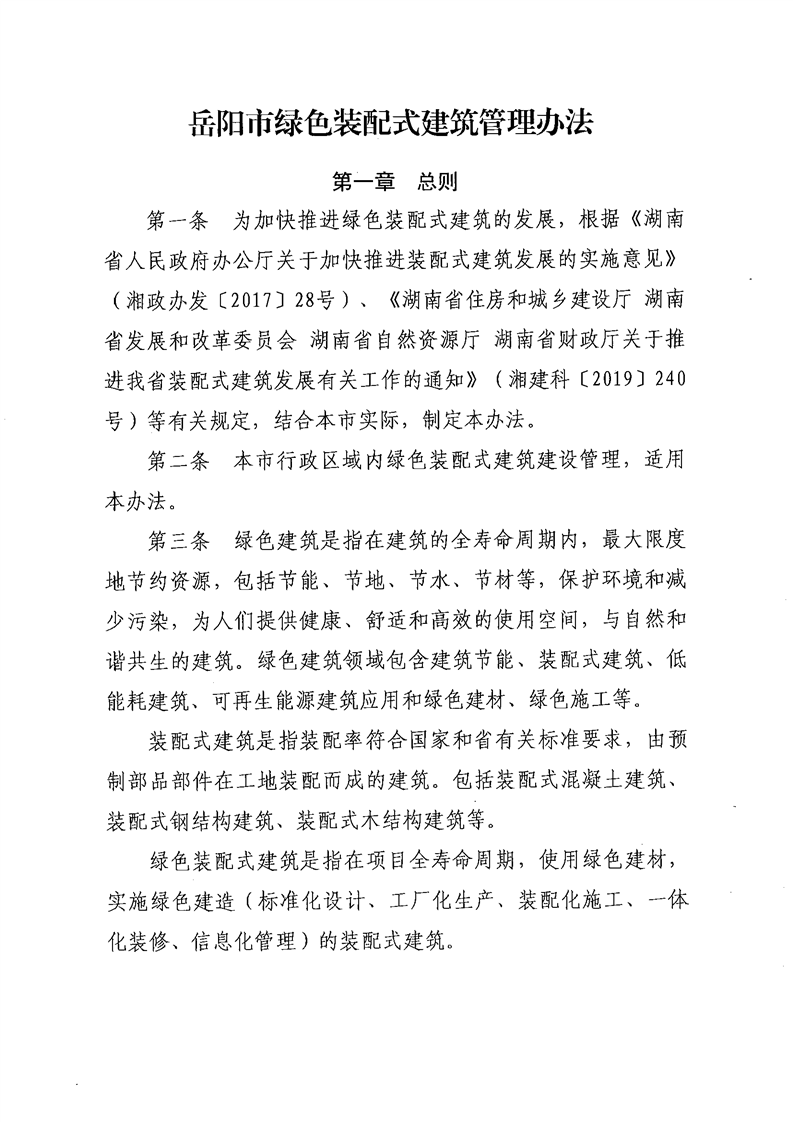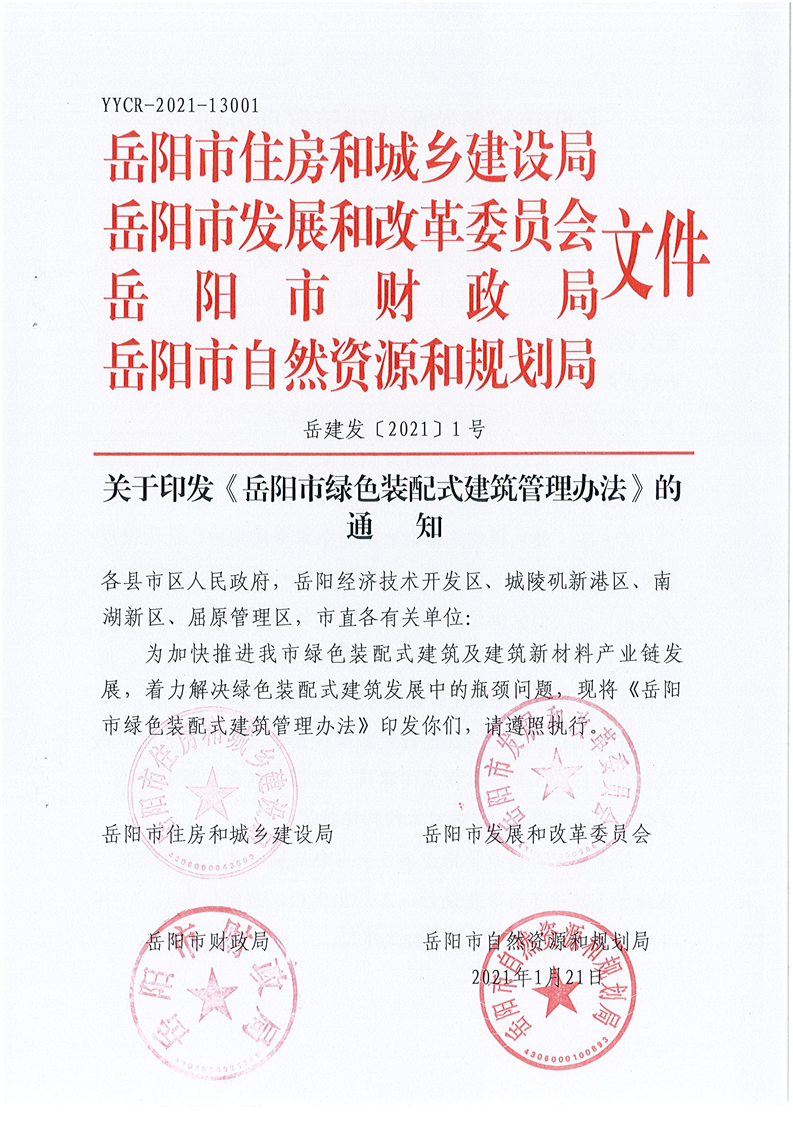 岳阳市住房和城乡建设局关于印发《岳阳市绿色装配式建筑管理办法》的通知