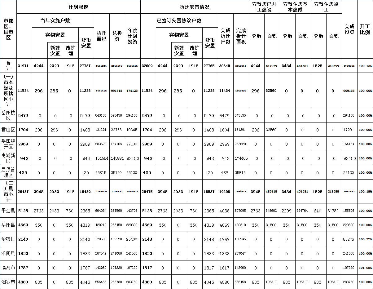 岳阳市2018年度11月省定棚改任务完成情况表