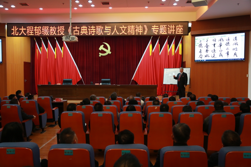 12月27日下午,北京大学中文系教授、博士生导师程郁缀担任主讲嘉宾,为我局干部职工带来题为《古典诗歌与人文精神》的专题讲座。局党组成员、调研员、副处级干部,局机关全体职工,二级机构班子成员以及局系统青年干部职工共110余人参加。
