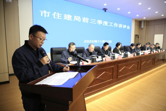 11月12日下午,市住建局召开2025年前三季度工作讲评会。会议全面总结前三季度工作成效,分析当前攻坚阶段的形势任务,部署第四季度冲刺目标。局党组书记、局长钱丹青主持会议并讲话,局党组成员、机关调研员、副处级干部,局机关科室正副职,局属单位班子成员及顺天、天通、科正三家企业主要负责人参会。