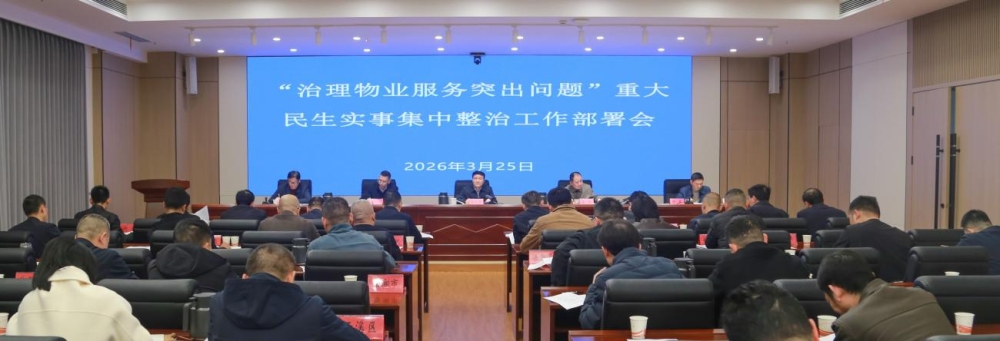 2026年3月25日,岳阳市住房和城乡建设局召开全市“治理物业服务突出问题”重大民生实事集中整治工作部署会,标志着该项民生攻坚行动全面进入实施阶段。市住建局党组书记、局长钱丹青作动员部署,市纪委监委第二纪检监察室主任潘纲出席会议并就监督工作提出要求。