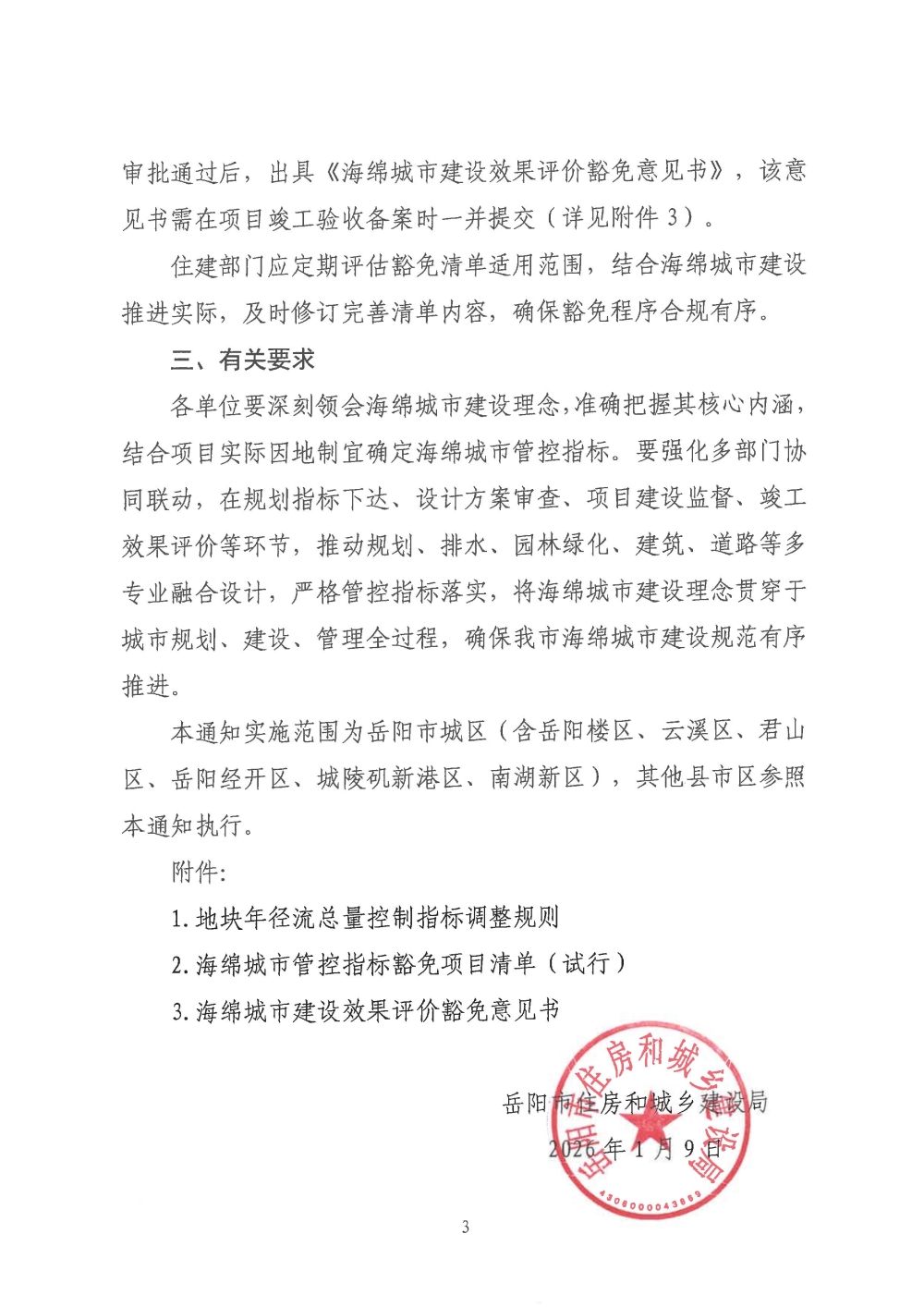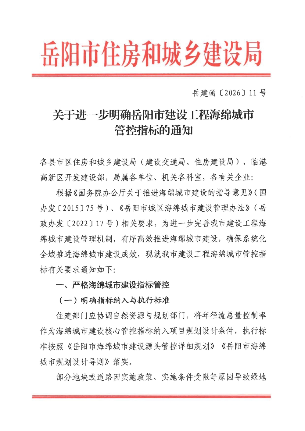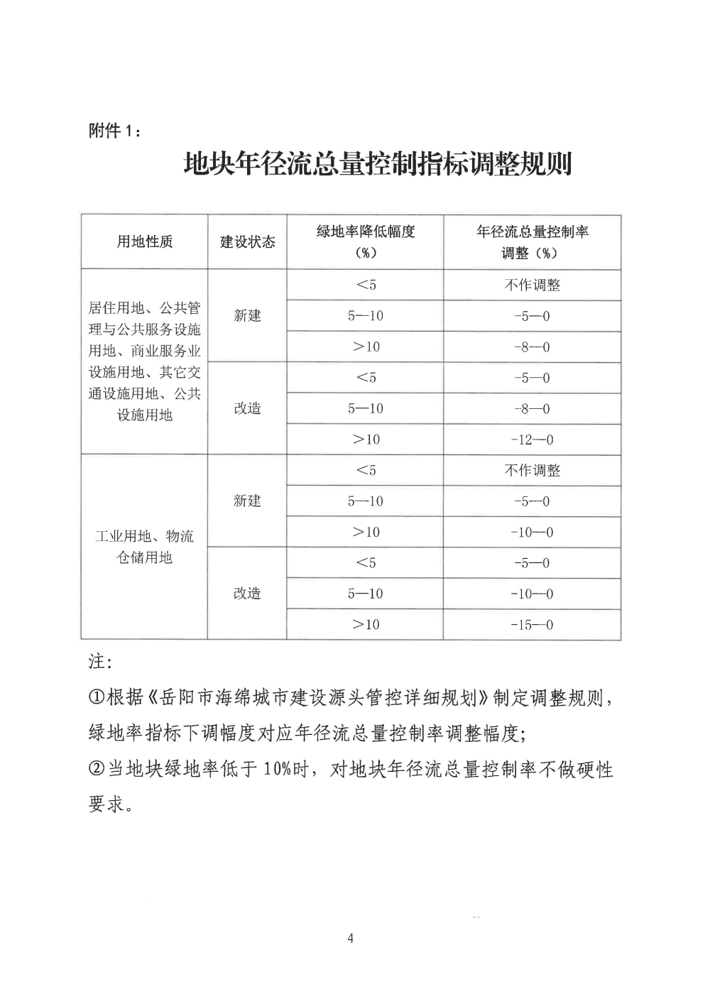 关于进一步明确岳阳市建设工程海绵城市管控指标的通知