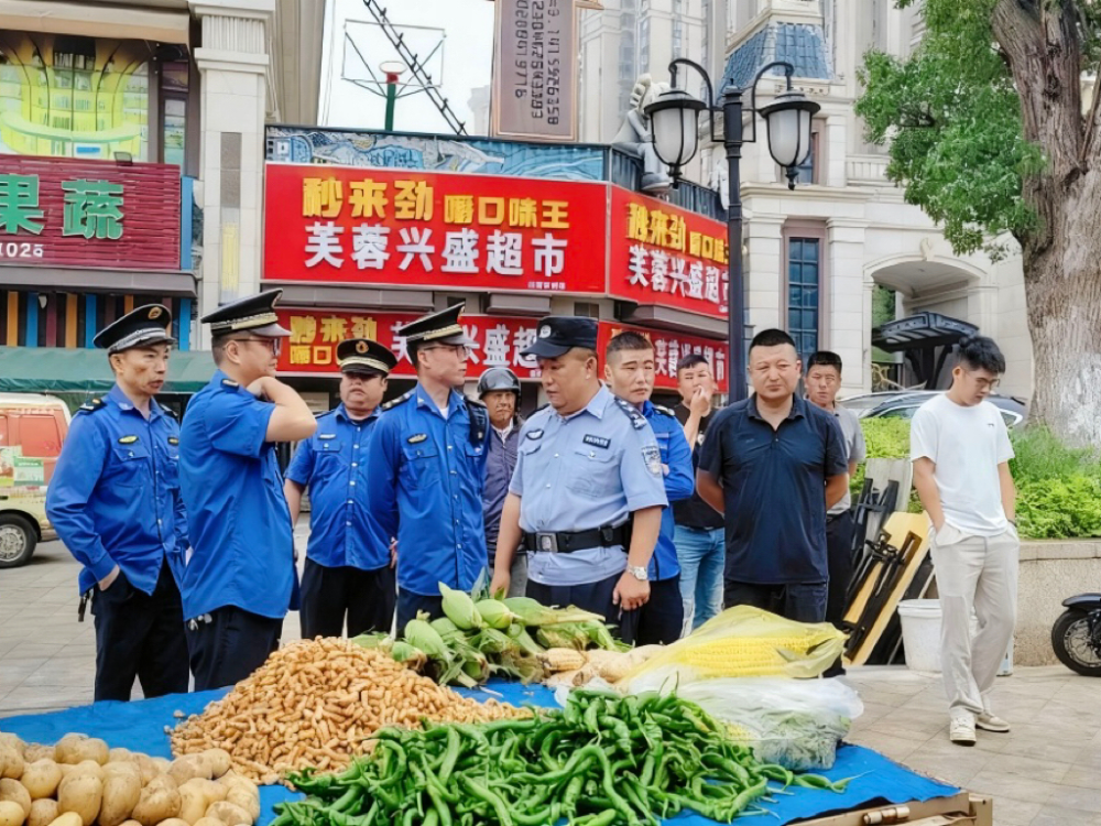 执法队员立即上前,以文明执法为原则,耐心向商贩说明占道经营的不良影响及安全隐患,同时详细解读相关执法依据与整治必要性,引导其撤离人行道、前往指定区域规范经营。但商贩情绪激动,明确拒绝配合,现场陷入僵持状态。为及时化解矛盾,木里港中队迅速联动木里港社区与公安民警到场联合开展工作。经多方耐心沟通、释法说理,商贩最终认识到自身行为不当,主动撤除摊点并前往指定场所经营。