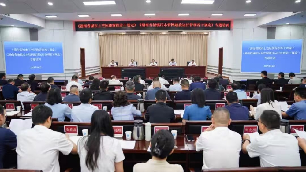 为深入学习贯彻习近平法治思想,认真落实中央城市工作会议精神,以及《中华人民共和国法治宣传教育法》有关规定要求,10月11日,省人大环资委、省自然资源厅、省住房城乡建设厅联合开展《湖南省城市上空际线管控若干规定》《湖南省城镇污水管网建设运行管理若干规定》专题培训。省人大常委会党组成员、副主任陈飞出席并讲话,省人大常委会委员、环资委主任委员邹文辉主持。省住房城乡建设厅党组书记、厅长陈旌,省自然资源厅党组书记、厅长,省自然资源总督察李全胜出席并作专题辅导。省市县人大、自然资源、住房城乡建设(城管)等部门及规划设计单位近3000人参加培训。