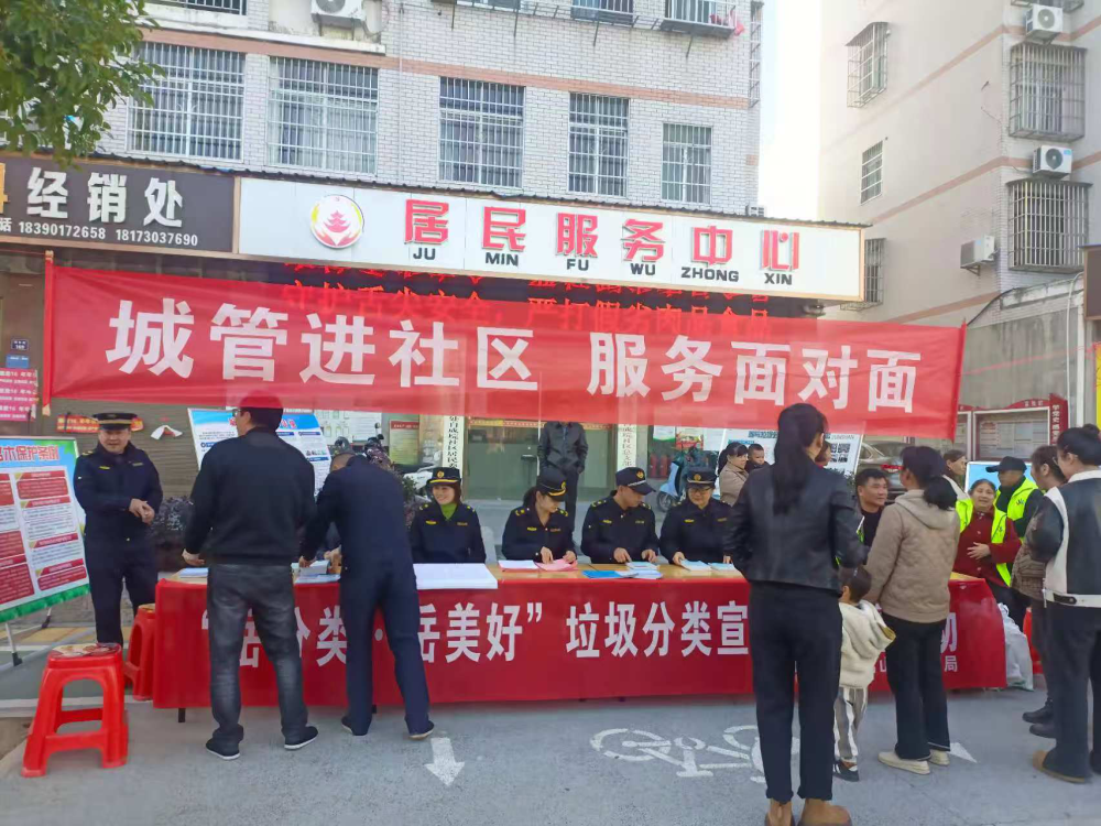 11月22日,市城管执法支队君山大队联合君山区城管局垃分办、燃气办、绿化中心、智慧城管平台及岳阳长燃有限公司、长沙天洋环境管理有限公司,在柳林洲街道自成院社区、望城社区开展“城管进社区,服务面对面”活动。