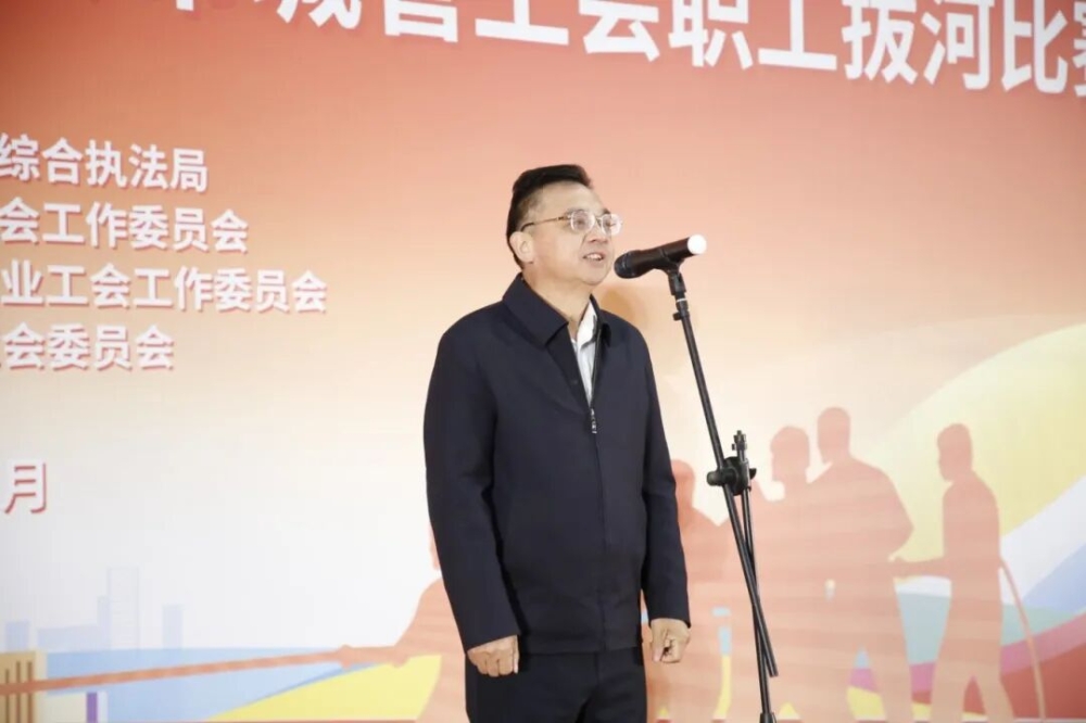 本次比赛旨在通过拔河这一最具团队协作精神的群众性体育活动,进一步磨砺干部职工勇于争先、团结协作的优良作风。市总工会党组书记、副主席林治学宣布开赛,市城管局党组书记、局长杜宇致开幕词,市总工会副主席练伟致闭幕词,市总工会副主席肖标志出席。
