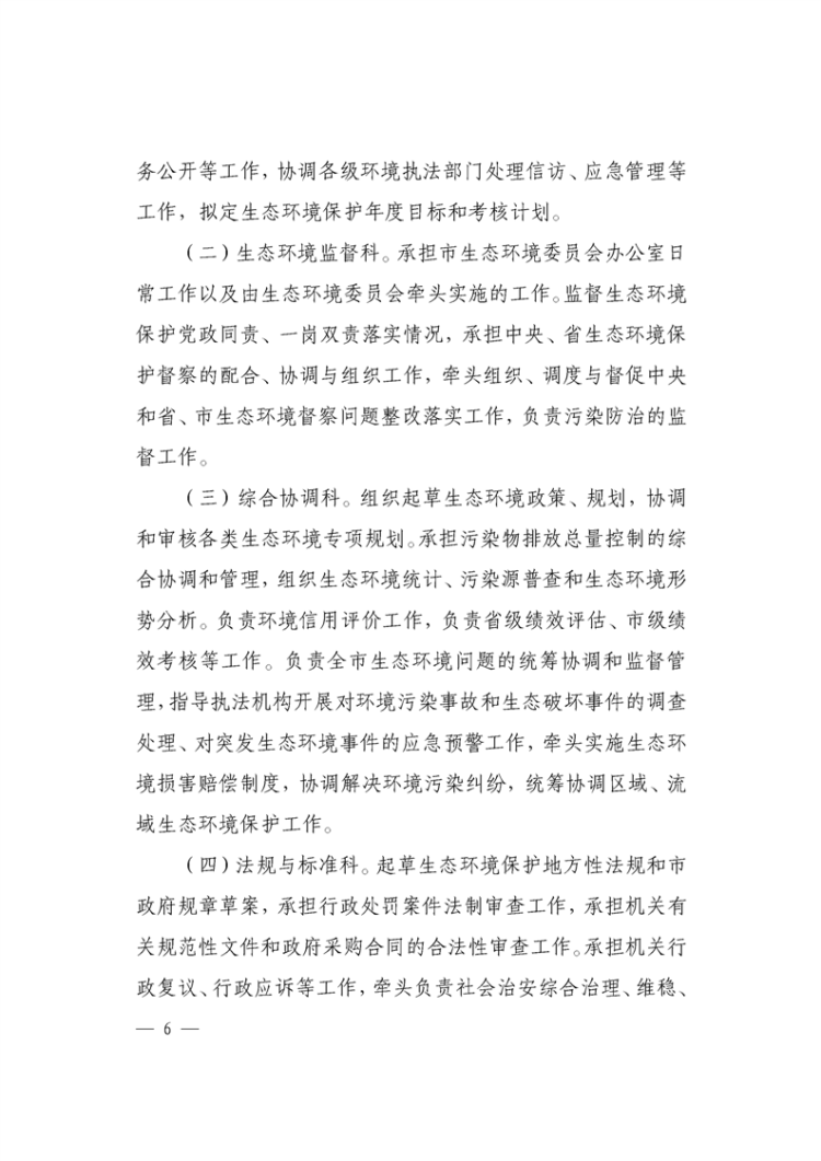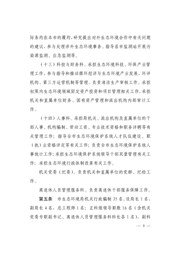 岳阳市生态环境局职能配置、内设机构和人员编制规定