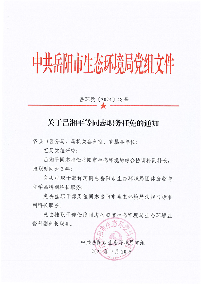 关于吕湘平等同志职务任免的通知