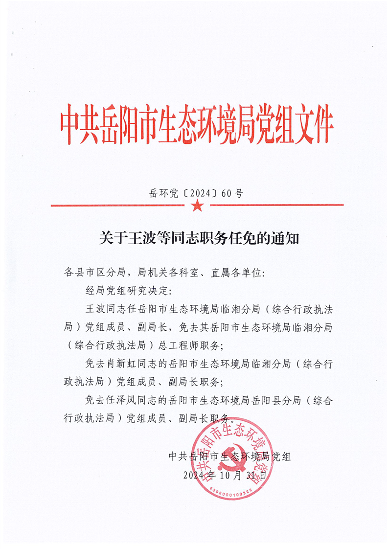 关于王波等同志职务任免的通知